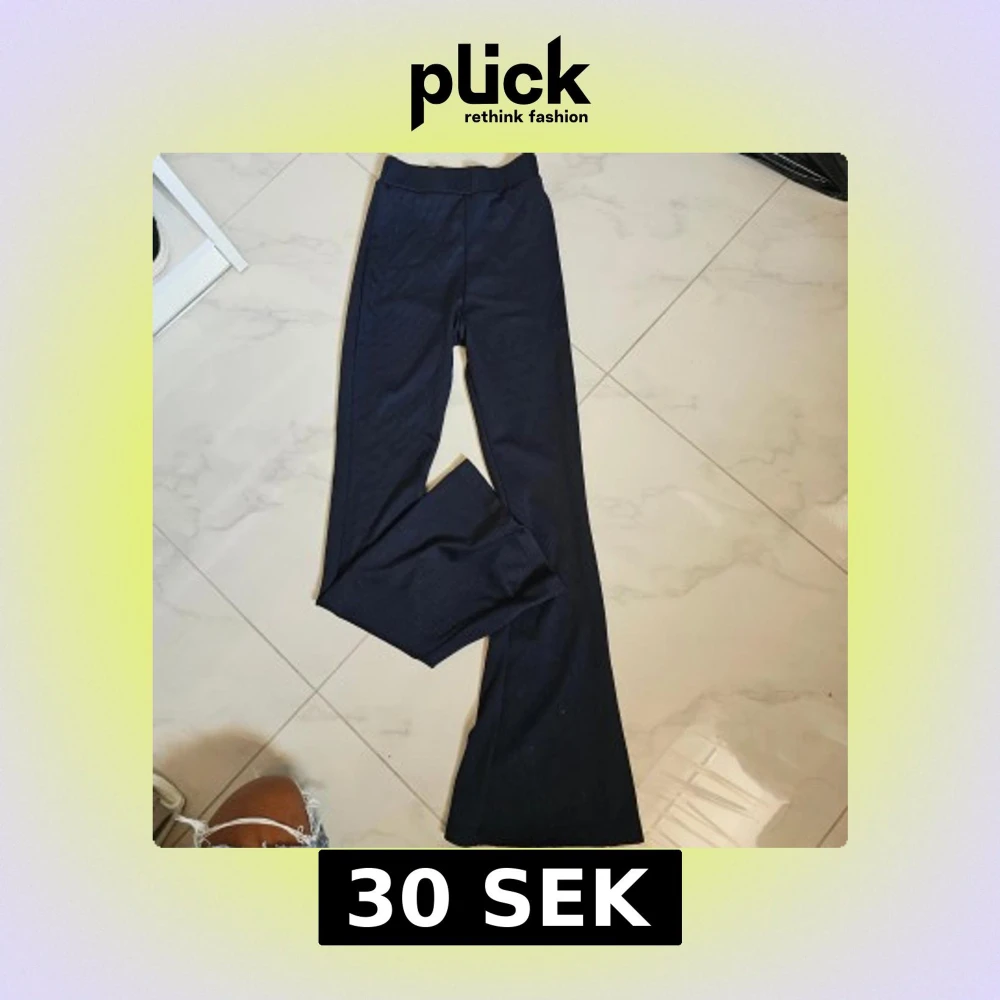 Snygga mörkblå ribbade byxor med bootcut-modell och stretchig midja. Perfekta för dig som gillar en bekväm men trendig look. Materialet är mjukt och följsamt, vilket gör dem sköna att bära hela dagen.