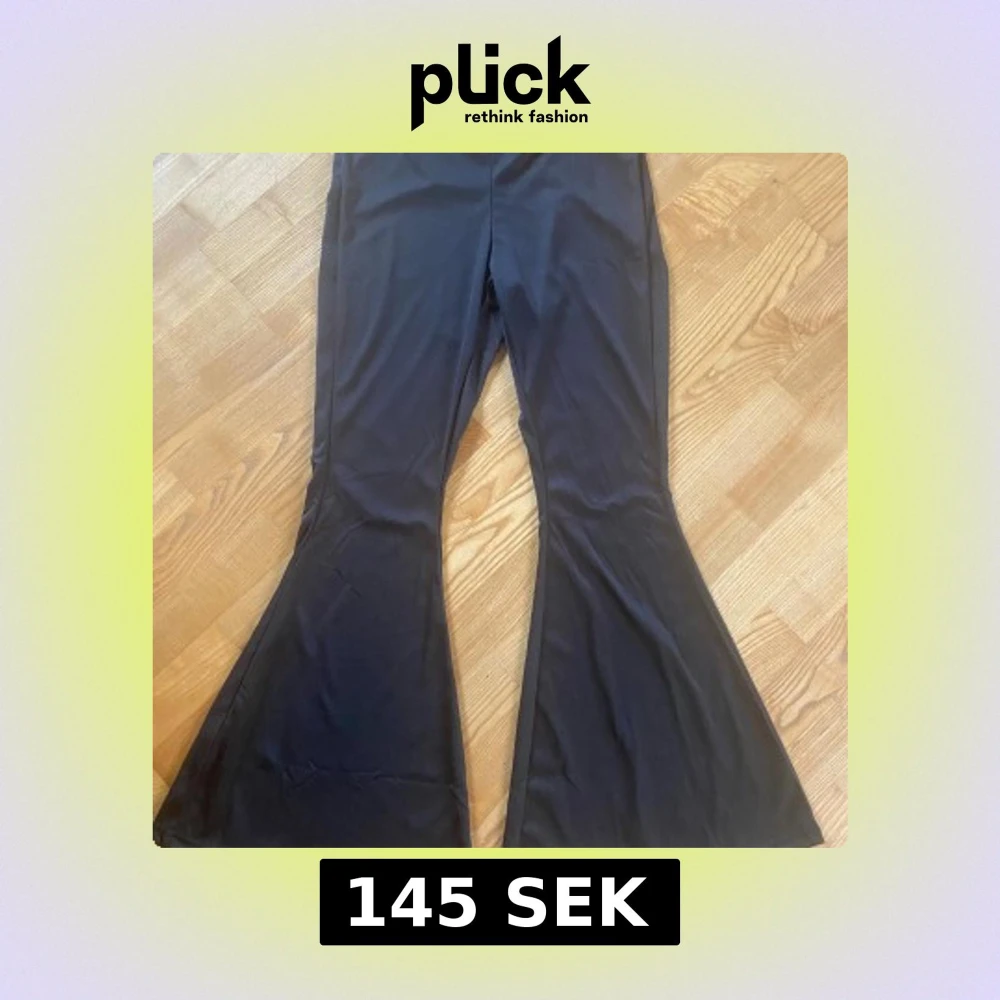 Säljer ett par svarta disco flares från Amscan i storlek S. Byxorna har riktigt utsvängda ben och är tillverkade i ett syntetmaterial som ger en cool retrolook. Perfekta för dig som vill sticka ut med en 70-talsvibe. Använda endast en gång på 70-talsfest! Nyinköpta för 250kr, kvitto finns. Se min andra annons med guld-gula skjortan som användes till! :)