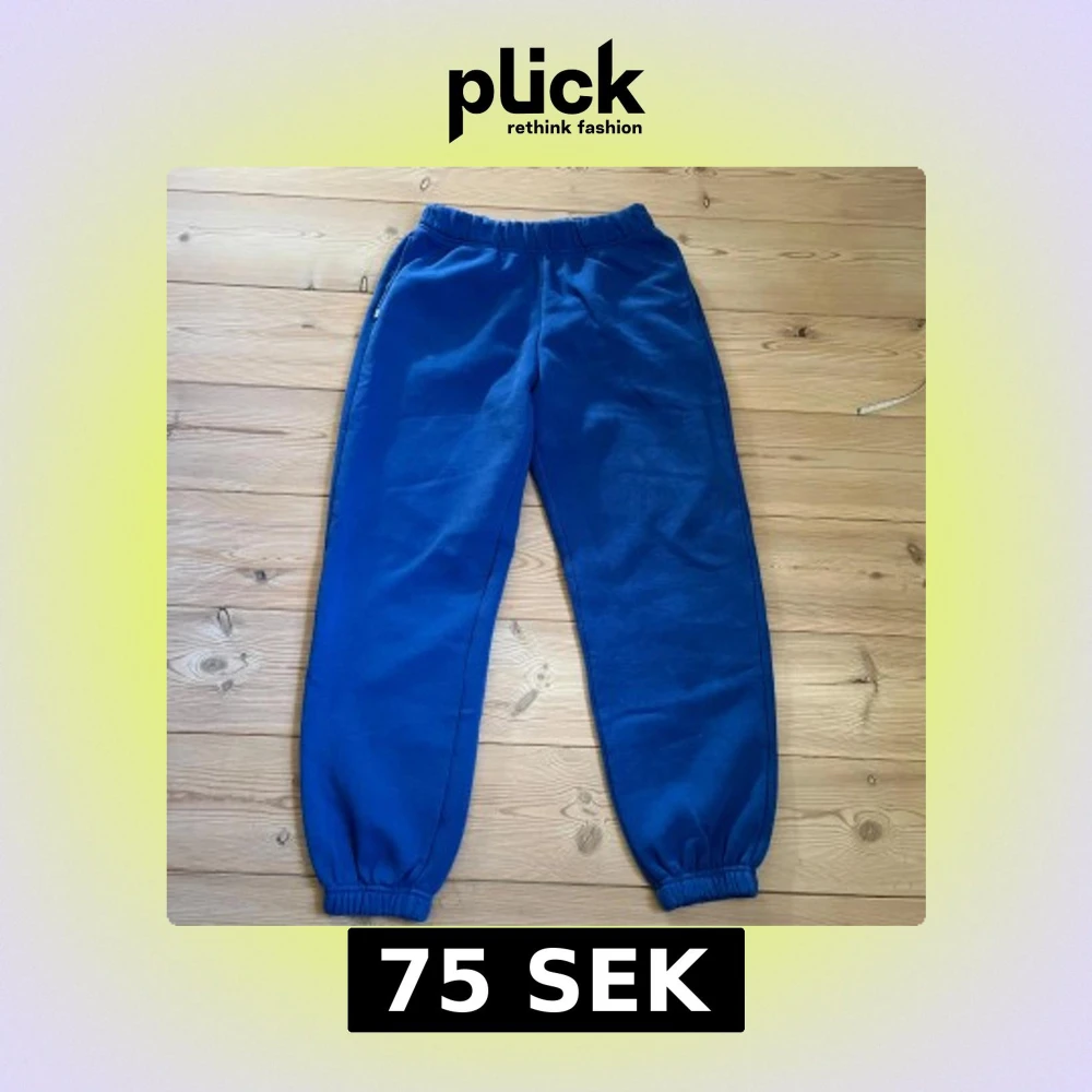 Snygga blå mjukisbyxor med resår i midjan och vid bensluten. Byxorna har sidofickor och är gjorda i mjukt bomullsmaterial, perfekta för chill eller träning. Enkel och clean design som passar till allt.