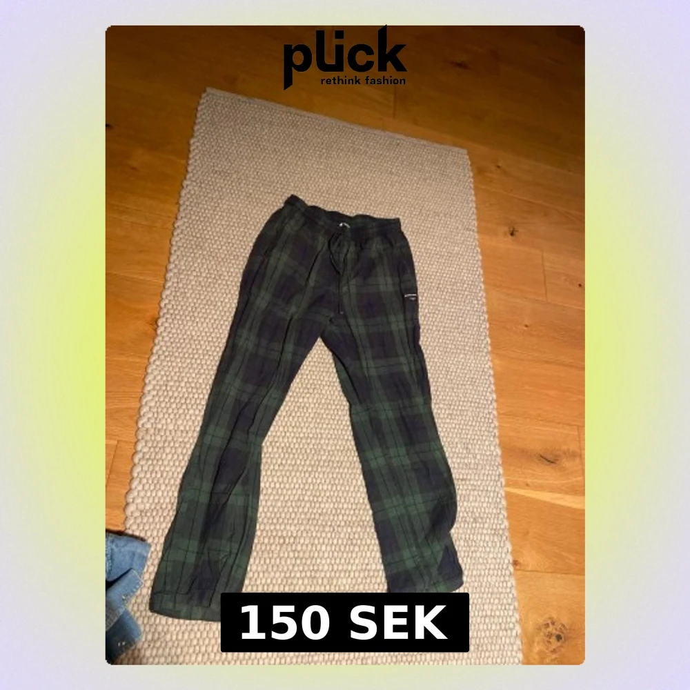 Säljer ett par gröna och mörkblå rutiga björn borg pjamasbyxor. Byxorna har avslappnad passform och är perfekta för chill dagar.