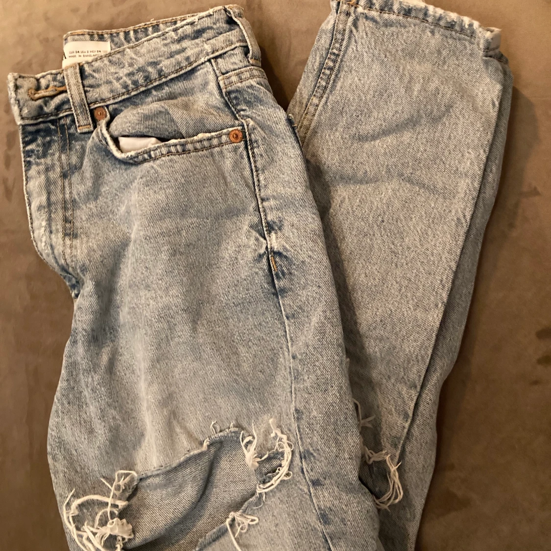 Säljer midwaisted blå jeans från zara använd ett fåtal gånger! Bra skick och bra passform!