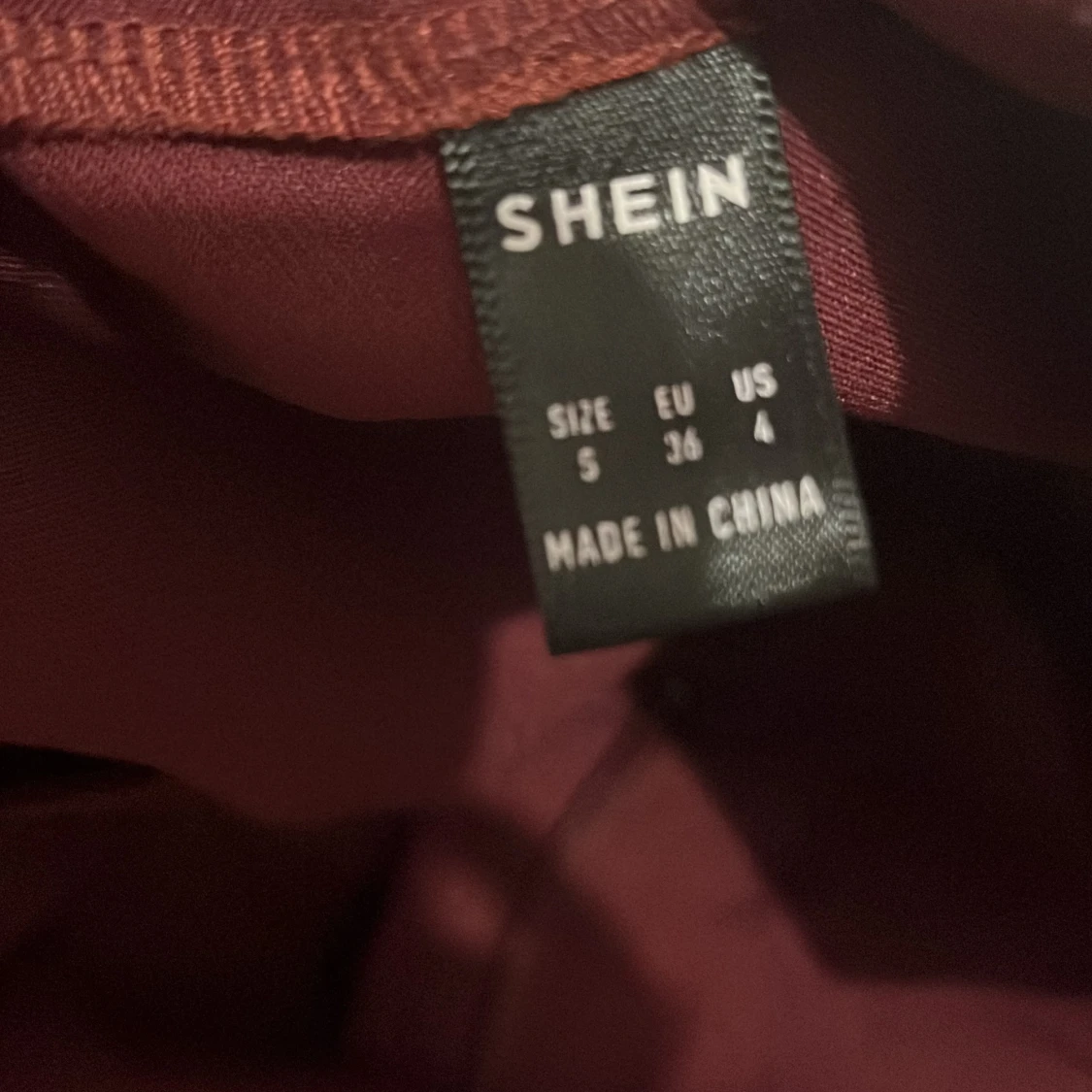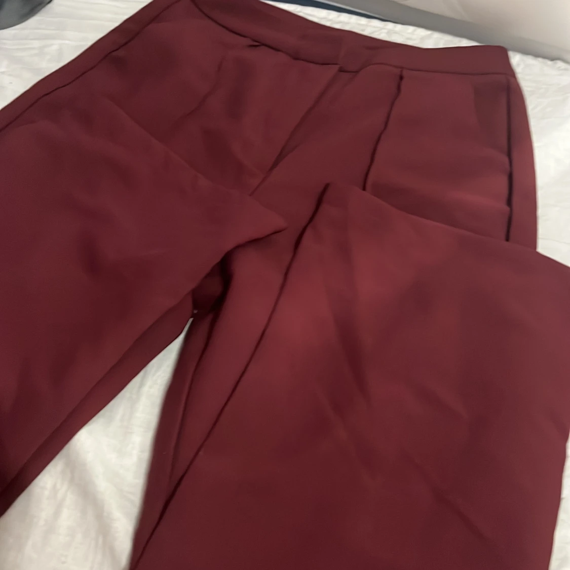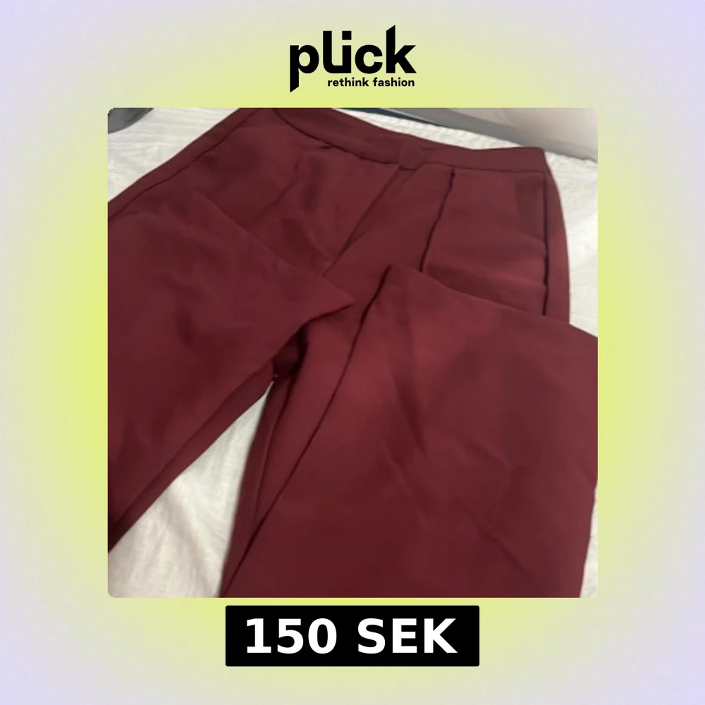 Snygga vinröda kostymbyxor från SHEIN i storlek S. Byxorna har en klassisk rak passform med hög midja och är perfekta för en stilren look. Tillverkade i ett mjukt och lätt syntetmaterial som känns bekvämt hela dagen.