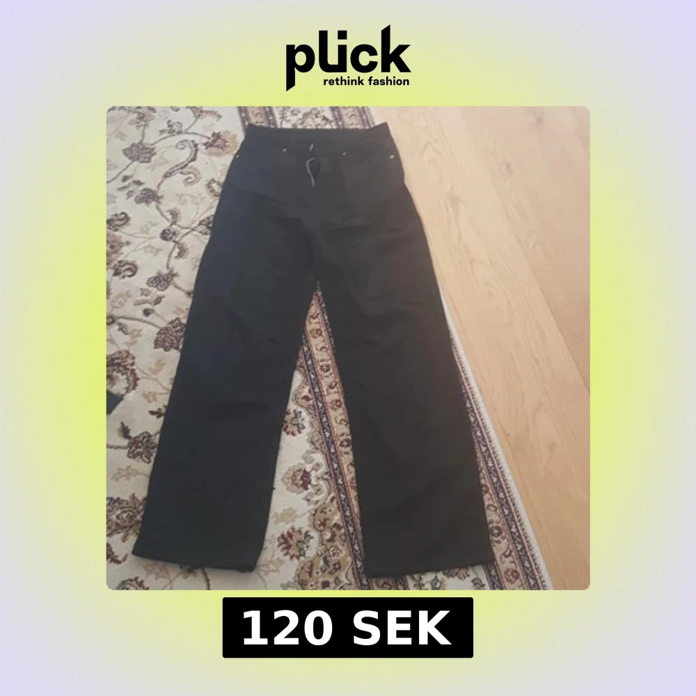 Svarta byxor från Shein i storlek S, med rak och bred passform. Klassisk design med fickor fram och knappstängning. Materialet är mjukt och känns bekvämt mot huden, perfekt för en chill och stilren look.