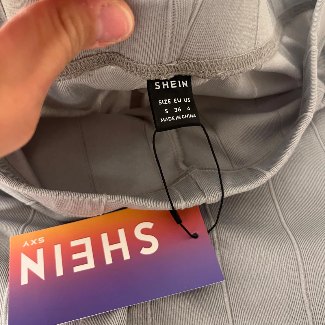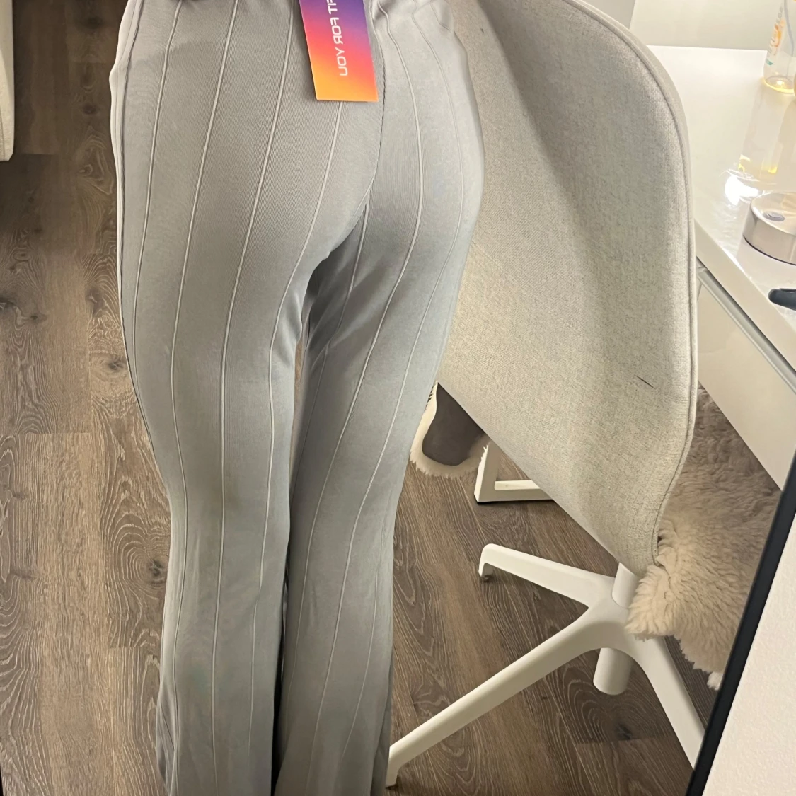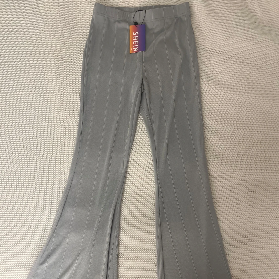 Snygga grå bootcut-byxor från SHEIN i storlek S. Säljer då dem är lite stora på mig men de är helt oanvända och super skönt material! Skriv för fler frågor💗