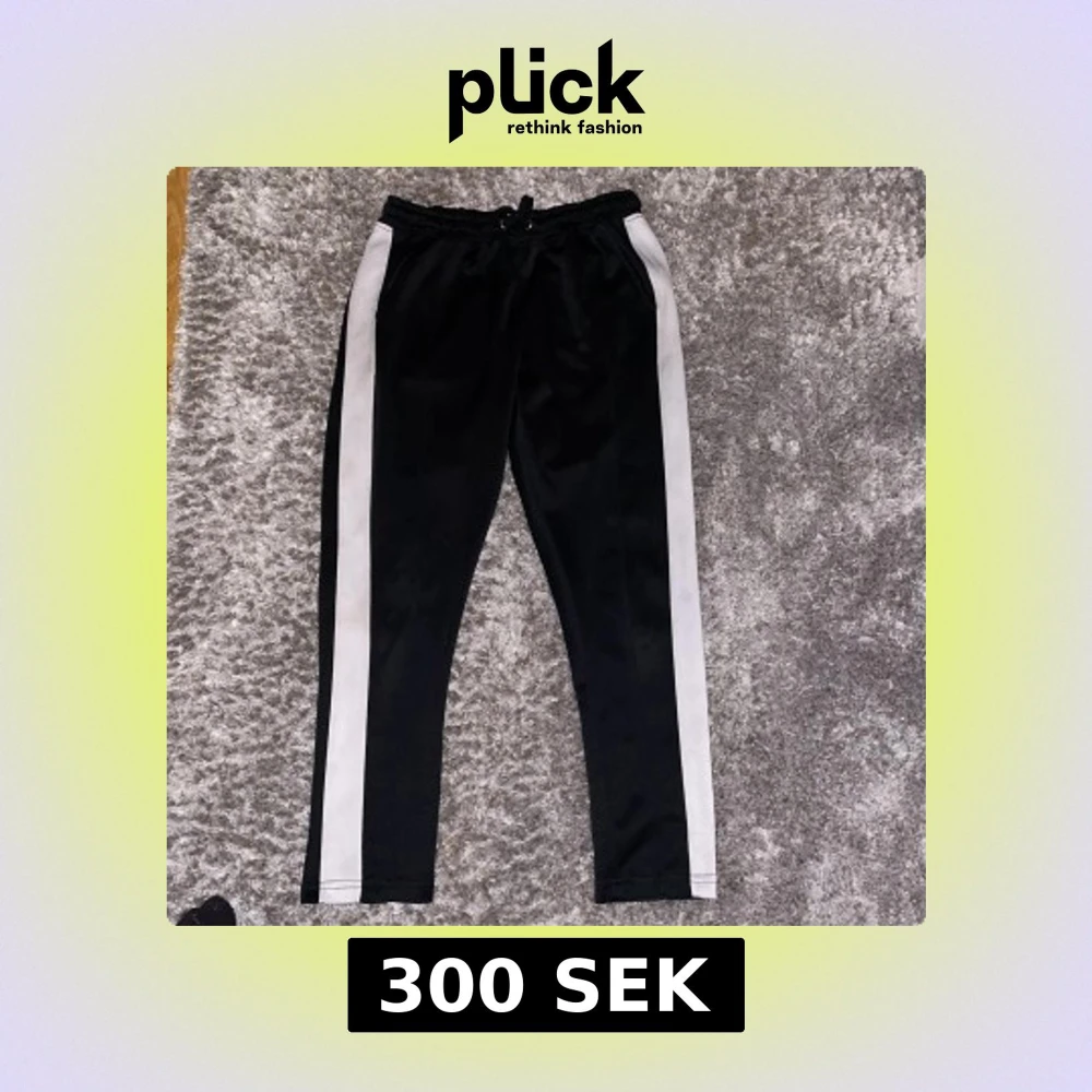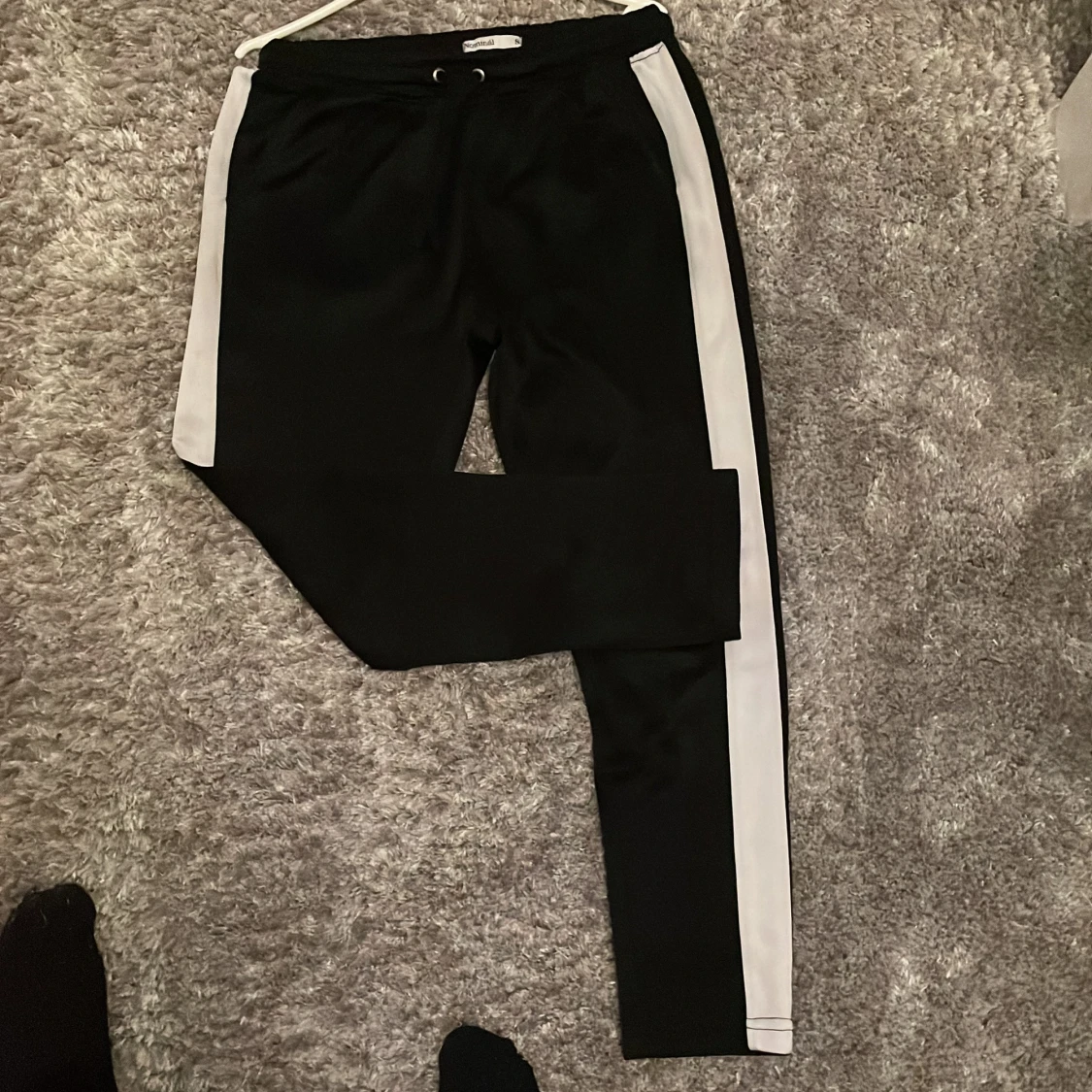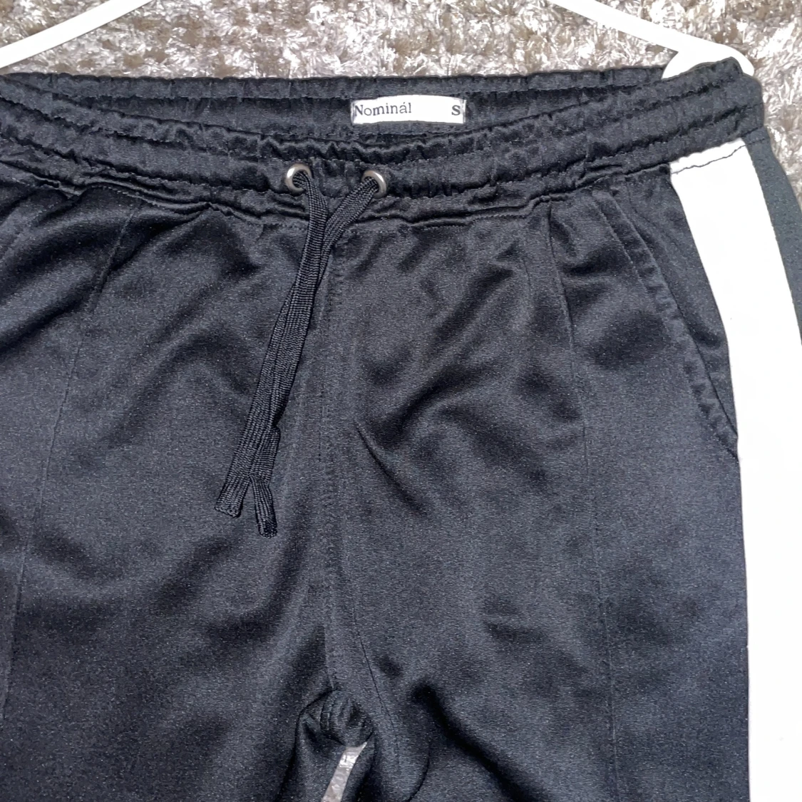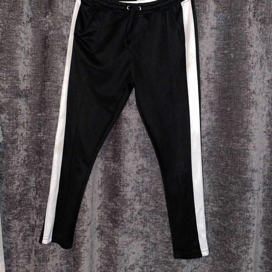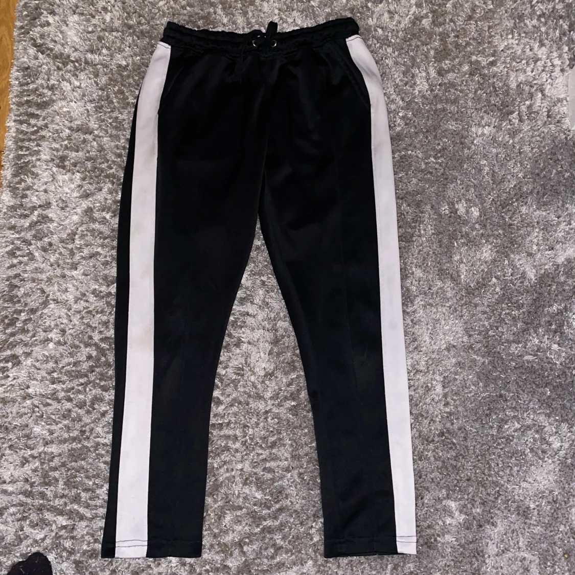 Svarta trackpants. Storlek S Snygga och bekväma byxor med vit sidopanel. Resår i midjan med dragsko.