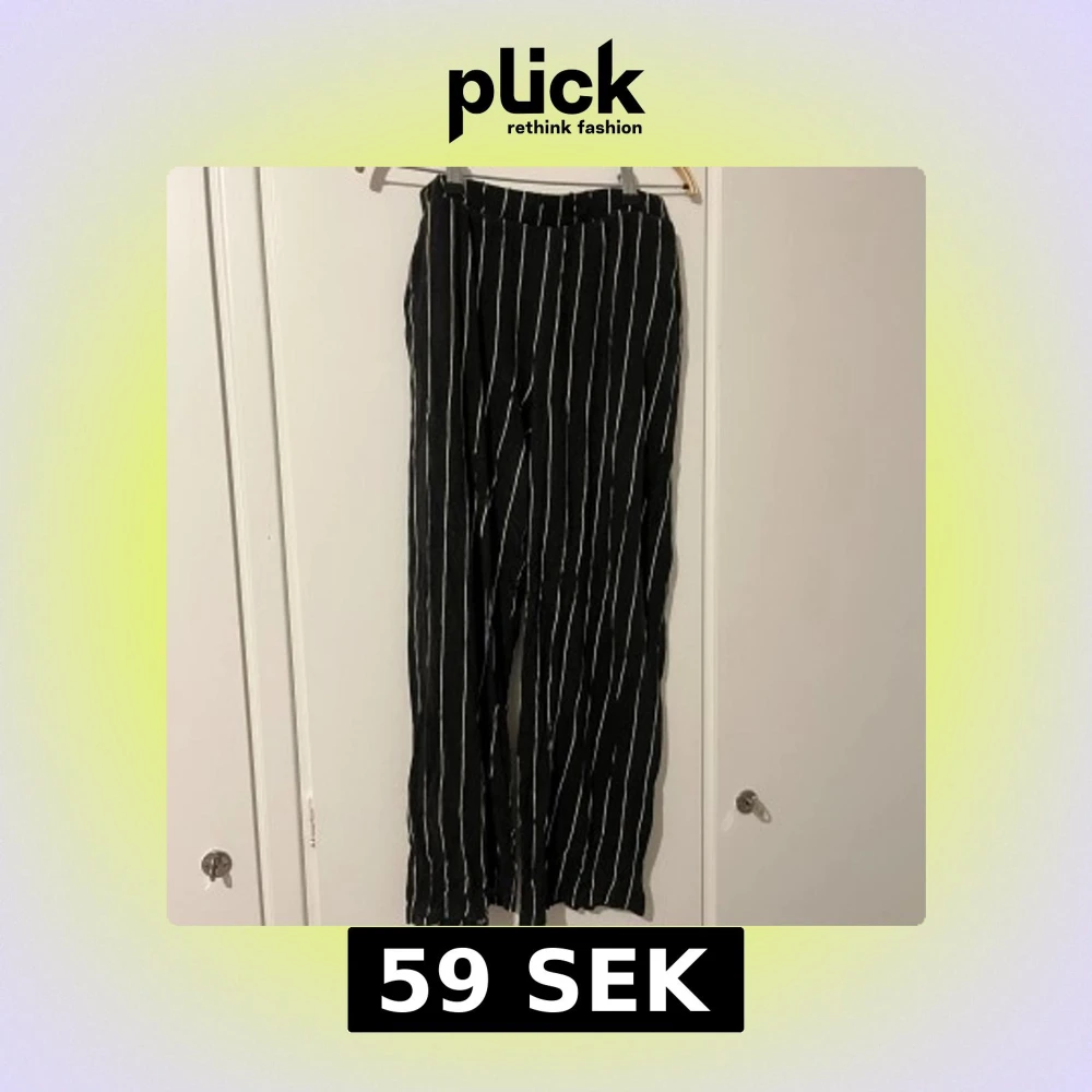 Svarta byxor från Divided med vita vertikala ränder och breda ben. Byxorna har resår i midjan och är tillverkade i ett mjukt, skönt material. Perfekta för en chill och trendig look. Fickor på sidorna för extra funktion.