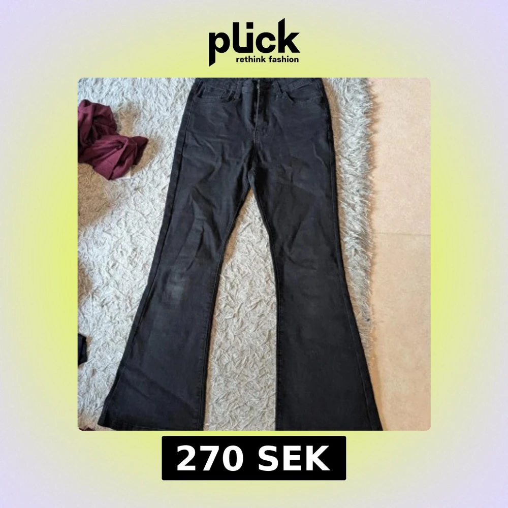 Säljer ett par svarta jeans med bootcut-modell och klassisk femficksdesign. Snygg passform med utsvängda ben som ger en retrovibe. Perfekta till sneakers eller boots.