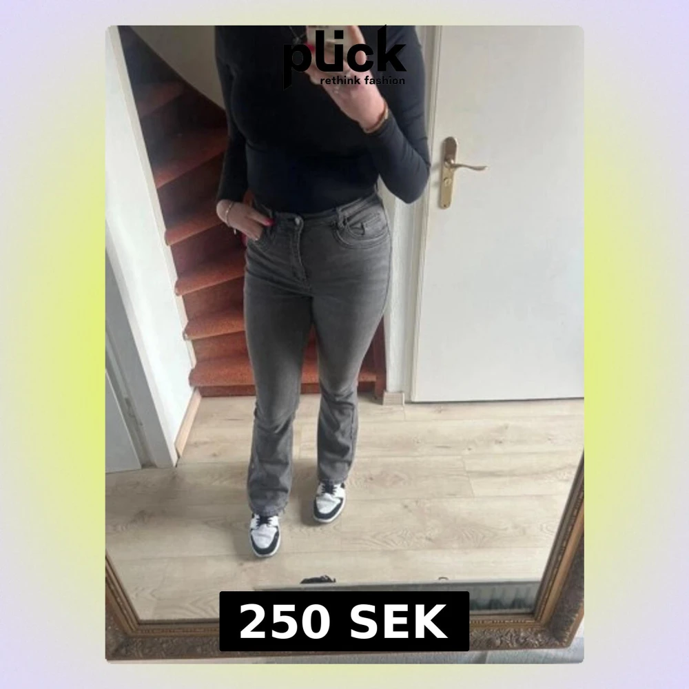 Snygga grå jeans med bootcut-snitt och hög midja. Jeansen har klassisk femficksdesign, dragkedja och knapp framtill. Materialet är jeans med en lätt tvättad look som ger en cool vibe. Passar dig som gillar en stilren och trendig look.