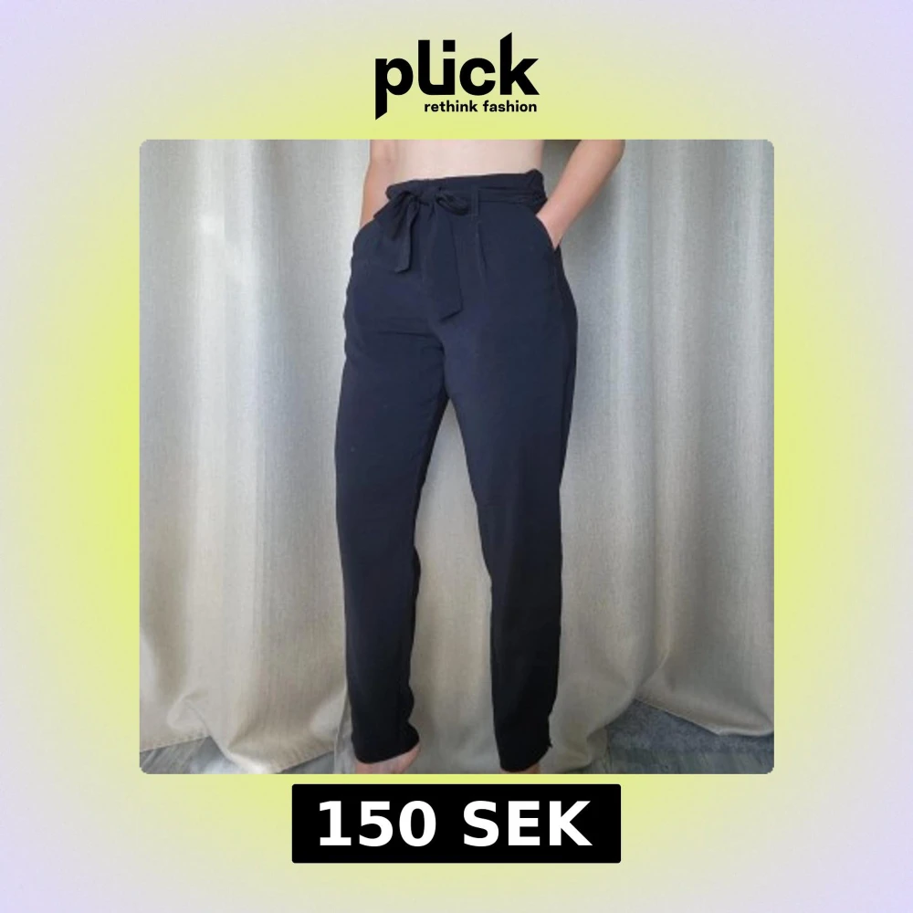Snygga svarta kostymbyxor med hög midja och knytband. Byxorna har raka ben, sidfickor och resår baktill för extra komfort. Perfekta för en clean och stilren look.