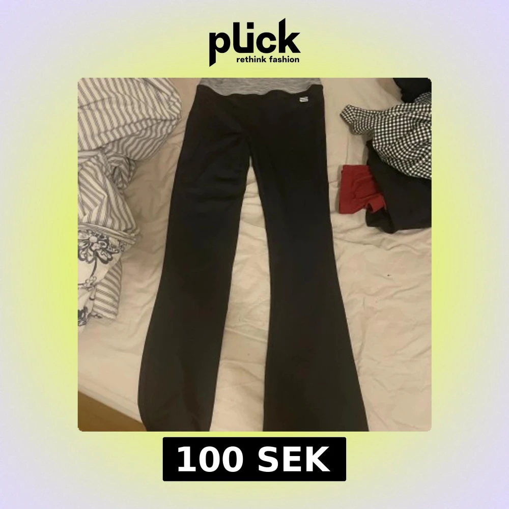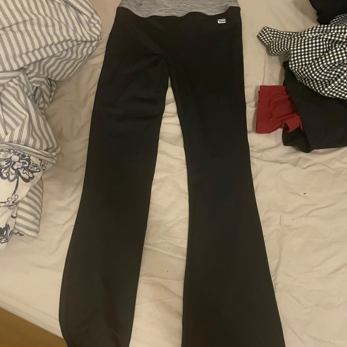 Svarta bootcut byxor med bred resår i midjan och stretchigt material. Snygg passform som sitter tajt upptill och släpper ut vid benen. Perfekta för en chill och trendig look.