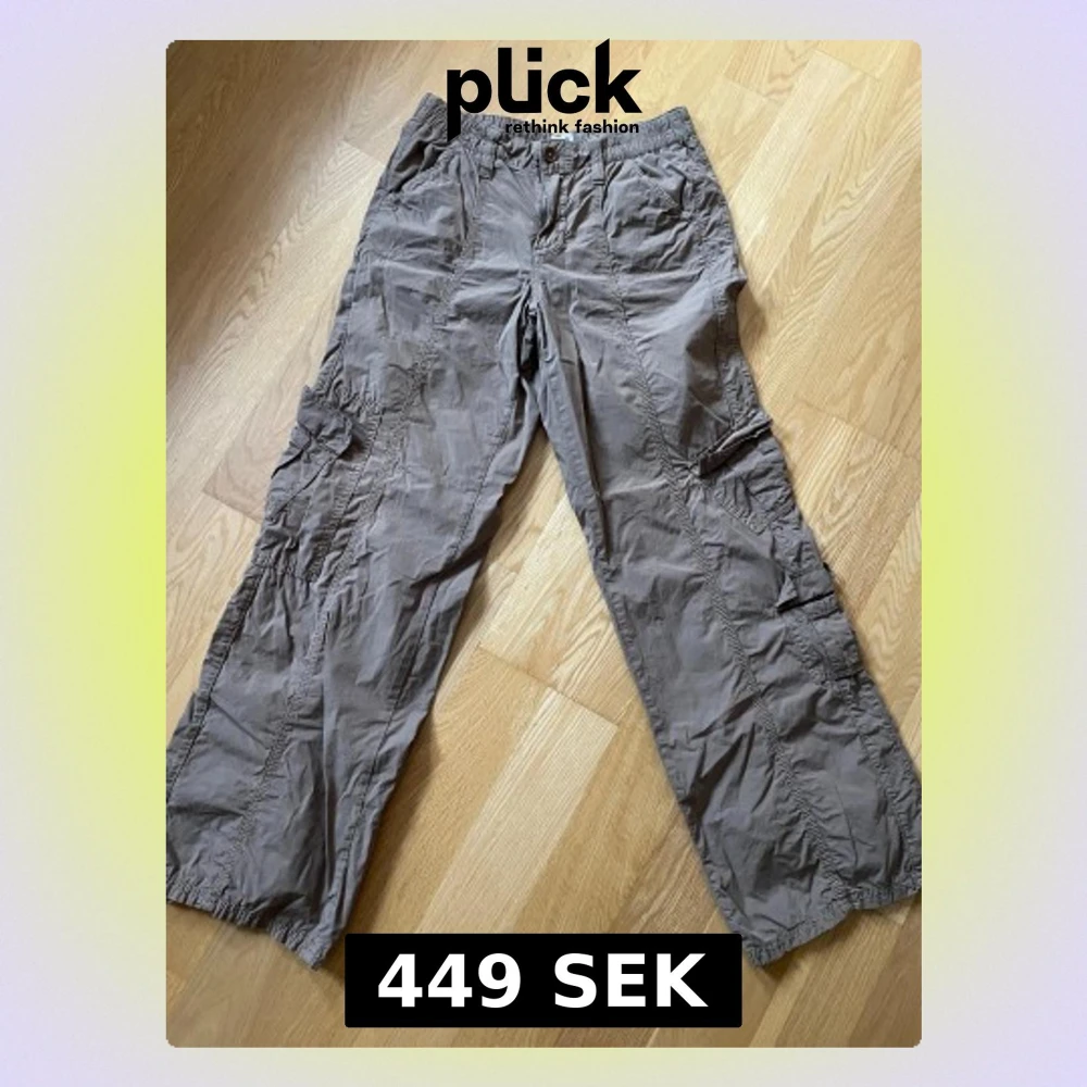 Säljer ett par beige Y2K cargo pants från BDG Urban Outfitters i storlek S. Byxorna har flera fickor på sidorna, elastisk midja och benslut, samt en loose passform. Perfekt för dig som gillar utility-vibe och streetstyle. Nypris 699kr.