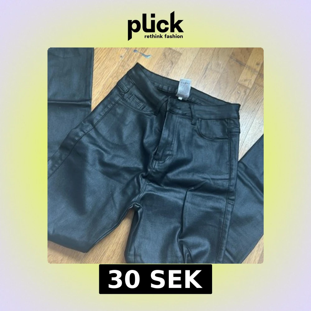 Snygga svarta byxor i skinnimitation med hög midja och dragkedja. Perfekta för en trendig look. De har en klassisk femficksdesign och en smickrande passform.