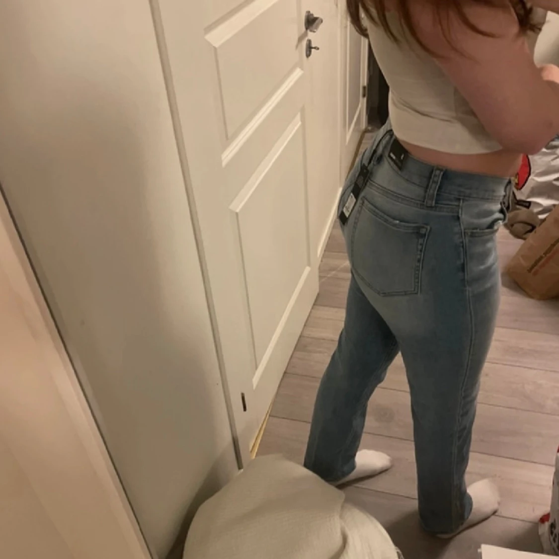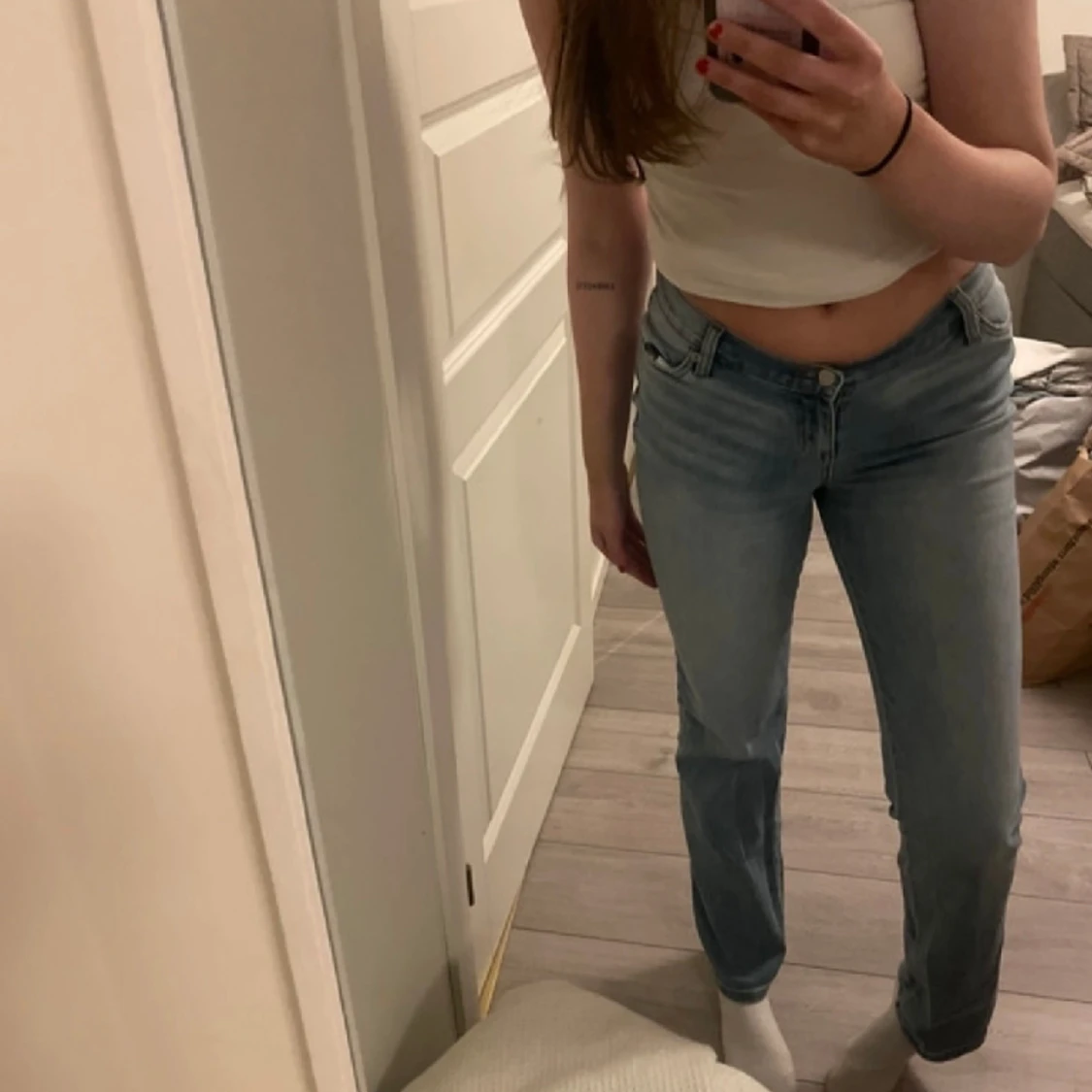 Snygga långa jeans som aldrig kommer till användning från Fashion Nova storlek 5 som motsvarar en s/m 💕