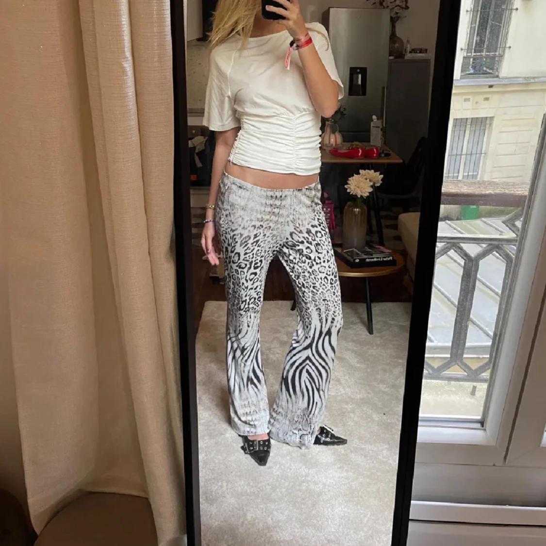 Säljer dessa skitsnygga byxorna i blandat djurmönster, då jag har två😇(Första bilderna lånade av tidigare ägare)