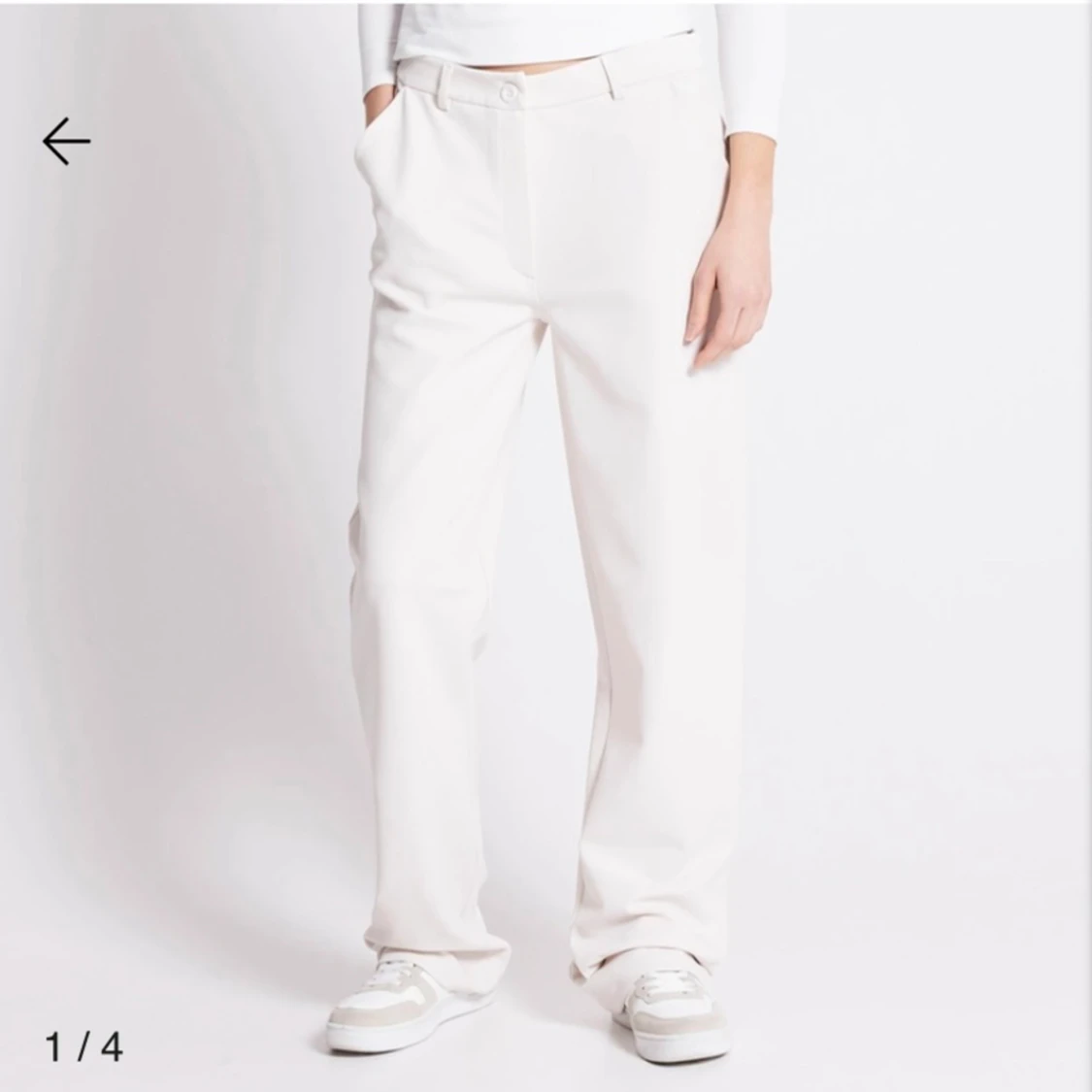 Säljer dessa underbara kostymbyxor då de tyvärr e lite för stora för mig🙃 Köpte de i storlek S men jag skulle säga att de passar bättre om man har storlek M. Använt de kanske bara en gången så de e fortfarande i bra skick🤍❣️