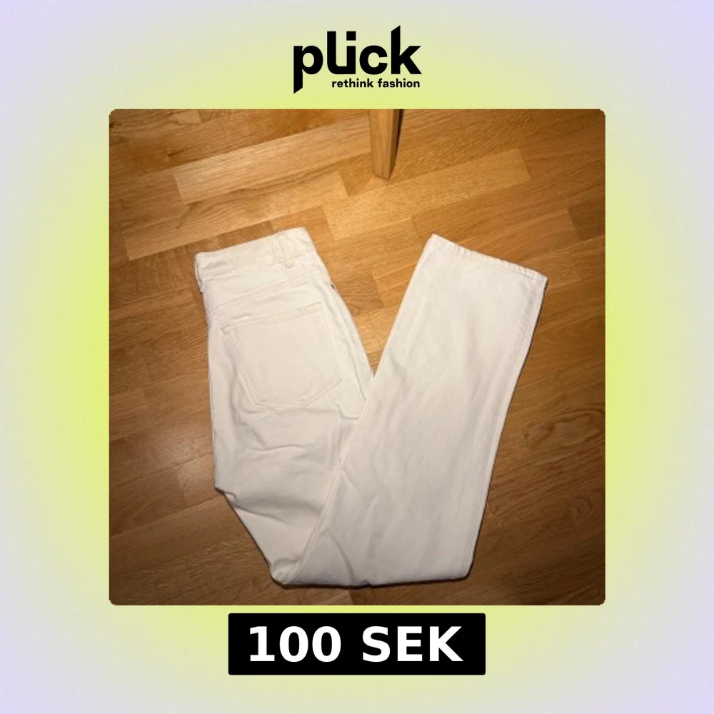 Säljer ett par vita jeans med rak passform. Klassisk femficksmodell och normal midja. Perfekta för dig som vill ha en clean och stilren look. Modellen row från weekday