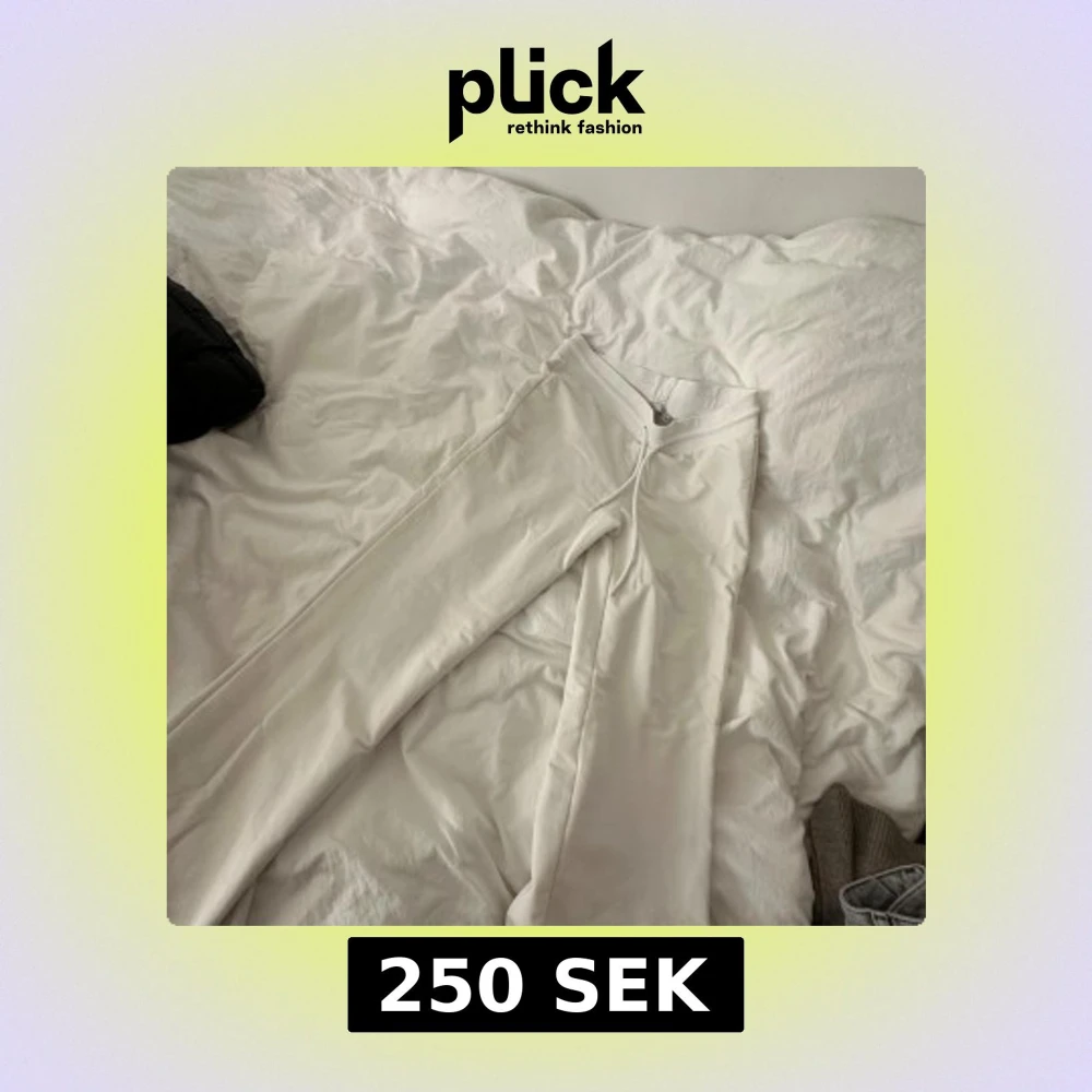 Säljer ett par vita mjukisbyxor med dragsko i midjan. Byxorna har raka ben och är perfekta för en avslappnad stil. Superbekväma och lätta att matcha med olika toppar.