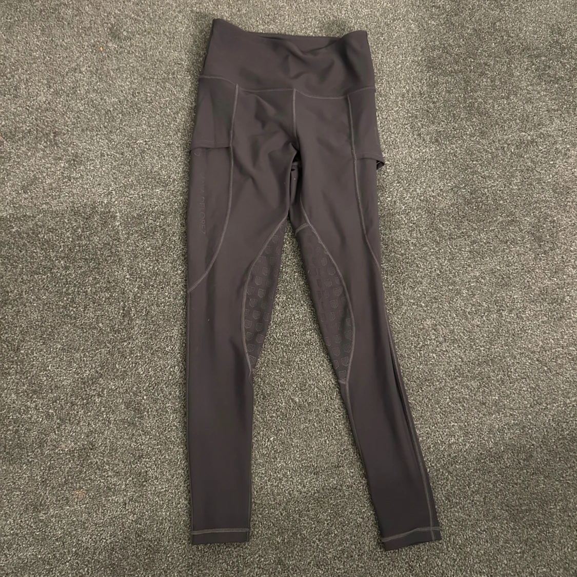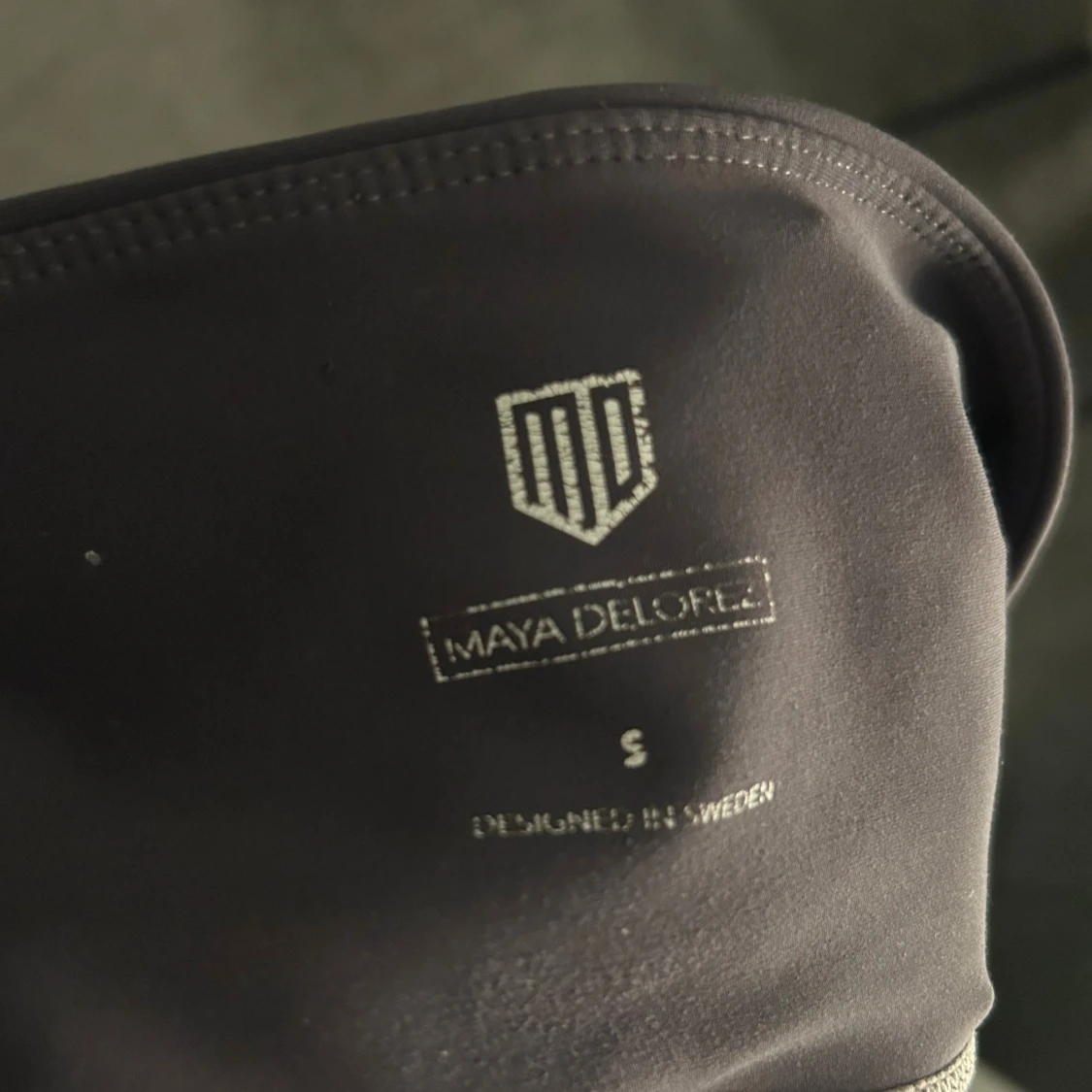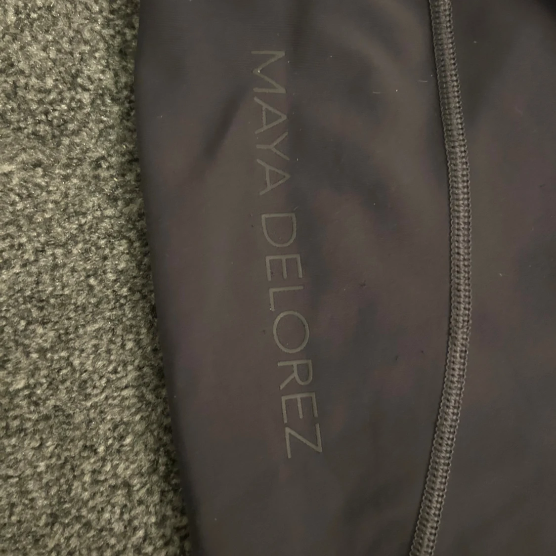 Snygga gråa leggings från Maya Delorez med hög midja och coola detaljer längs benen. Materialet är stretchigt syntet som sitter skönt och följer kroppen. Perfekta för träning eller ridning, med diskret logga på benet och smarta sömmar.