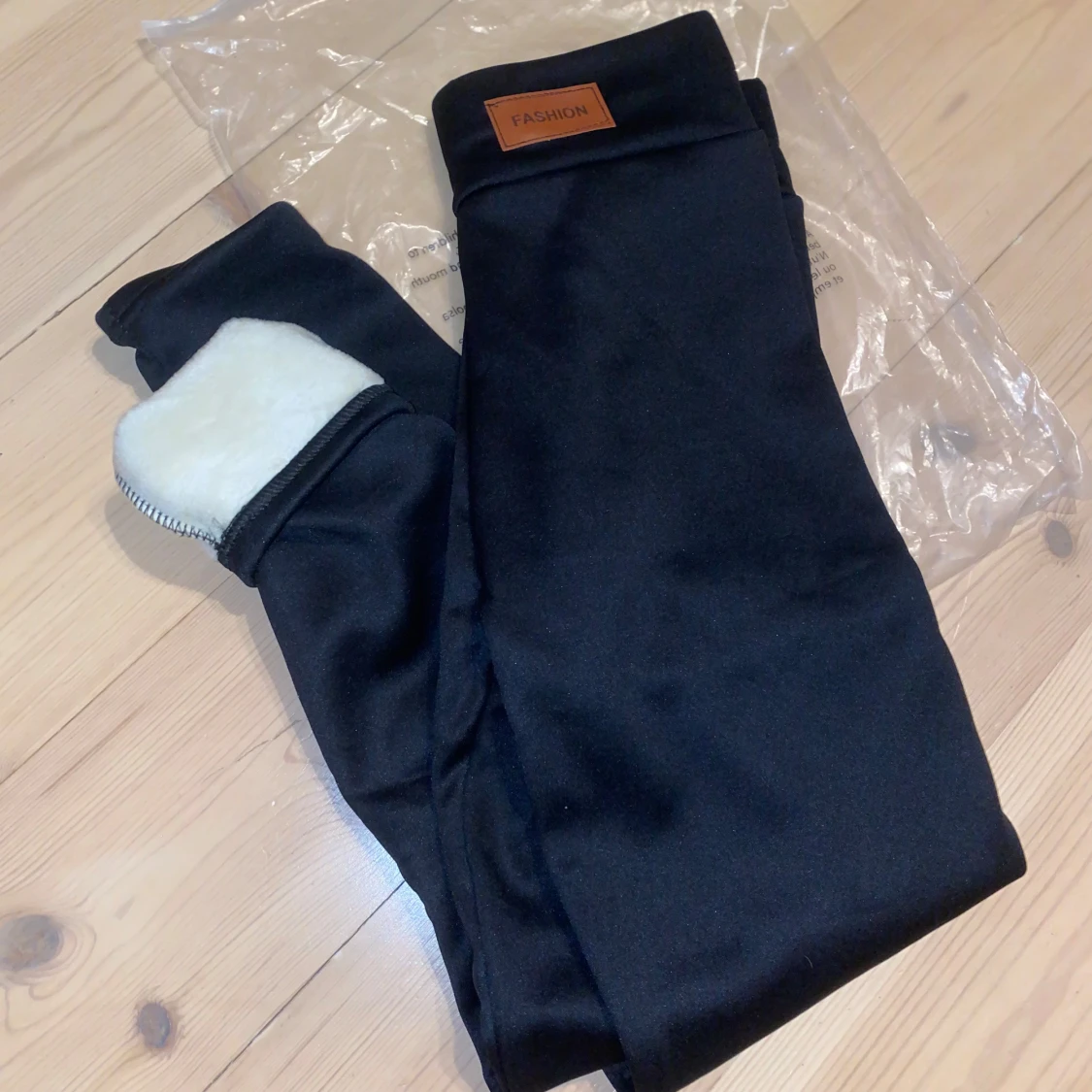 Säljer ett par svarta leggings från Fashion. De är fodrade med mjuk fleece, perfekt för kalla dagar. Leggingsen har en hög midja och är superbekväma. De är helt nya och kommer i originalförpackning. Perfekta för vintern! ❄️