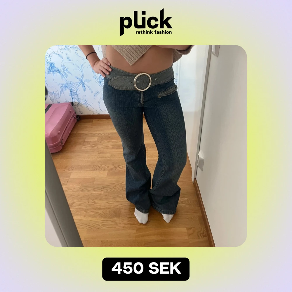 Säljer ett par snygga blå bootcut jeans i bra skick. De är lågmidjade och har ett snyggt bälte runt midjan, vilket gör stt midjan också kan justeras. Så fina men kommer tyvärr inte till använding☺️