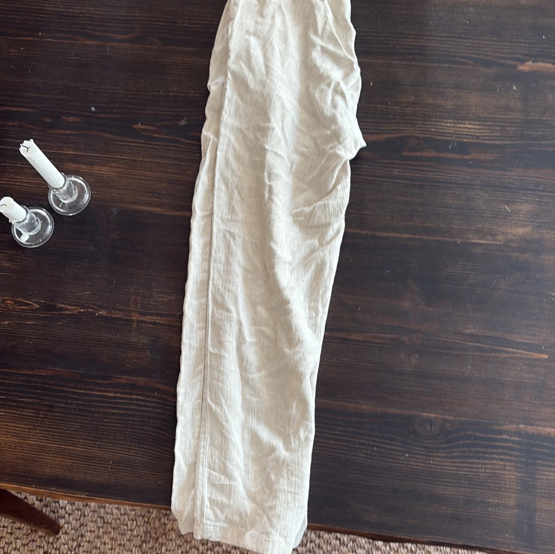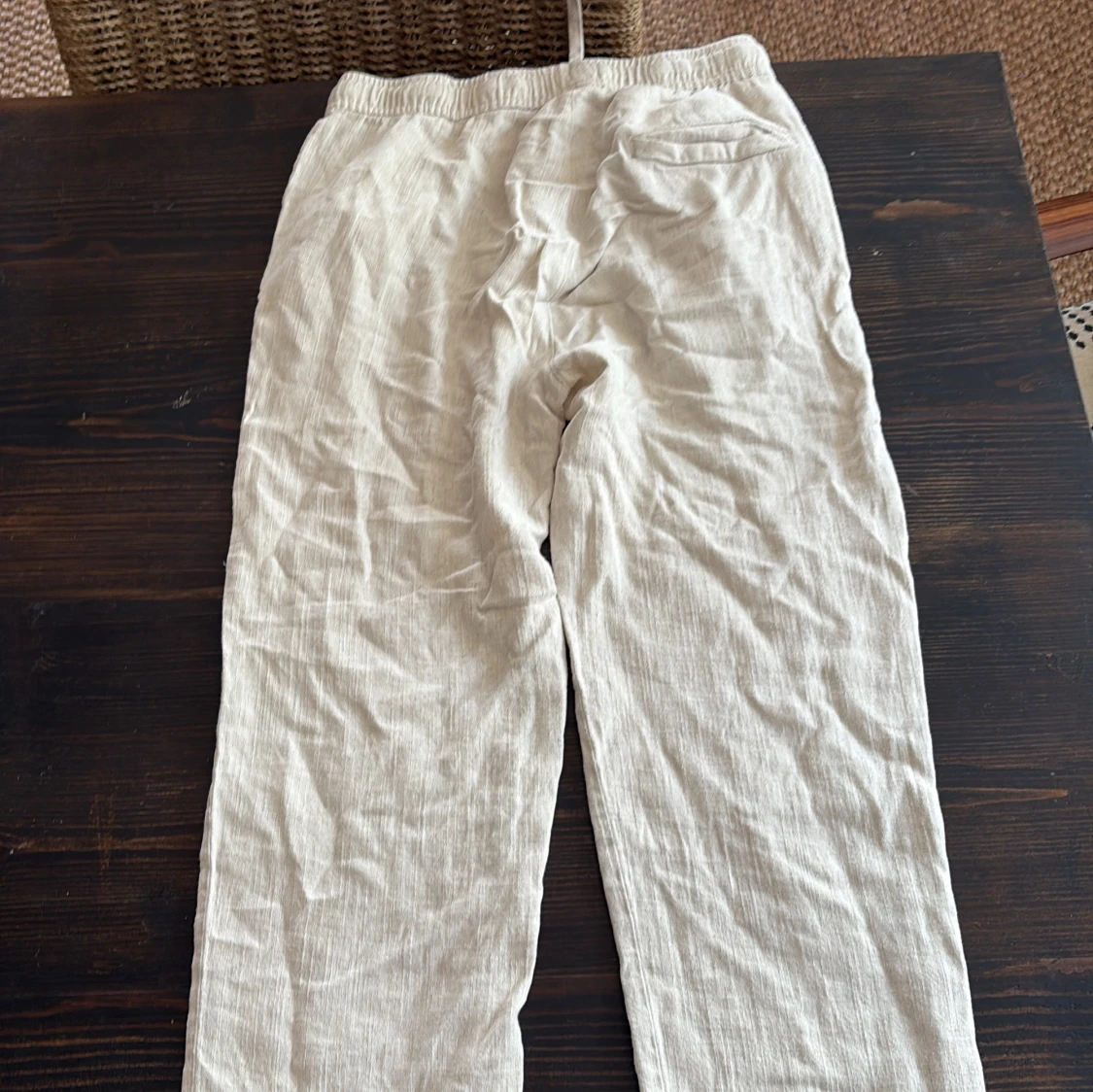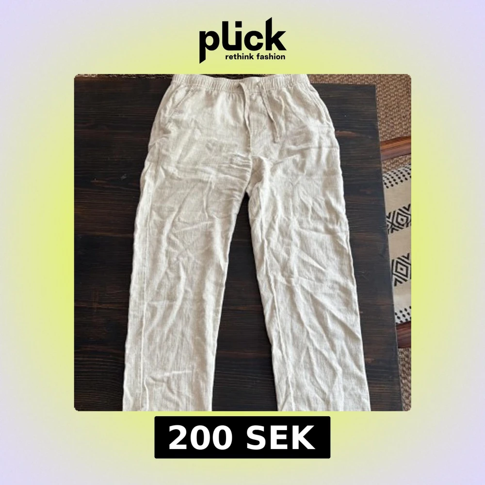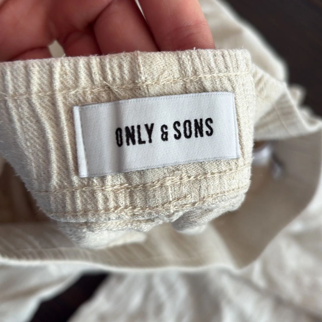 Snygga beiga linnebyxor från Only & Sons med avslappnad passform och elastisk midja med snörning. Perfekta för varma dagar, tillverkade i svalt linnematerial. Klassisk rak modell med fickor i sidorna och baktill.