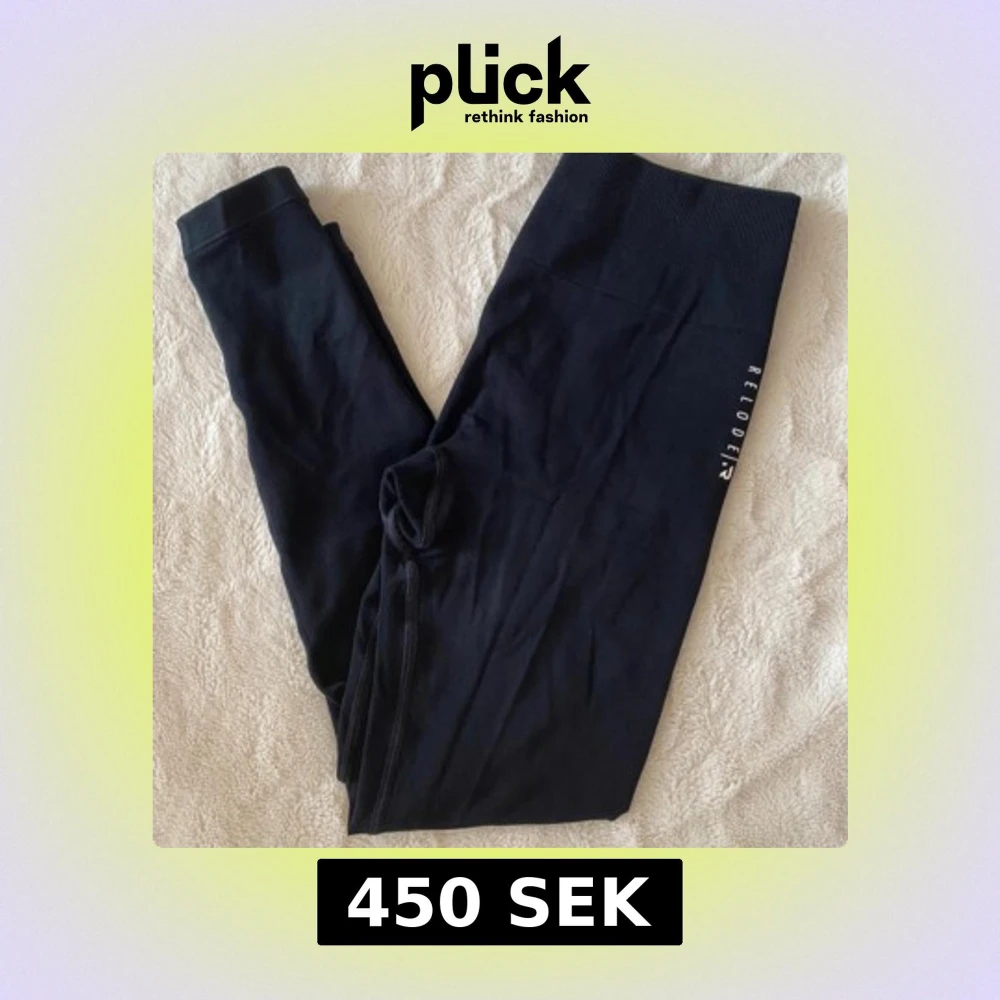 Svarta tights från Relode med hög midja och diskret logga på sidan. Tightsen är sömlösa och har en tight passform som sitter skönt mot kroppen. Perfekta för träning eller gymmet.