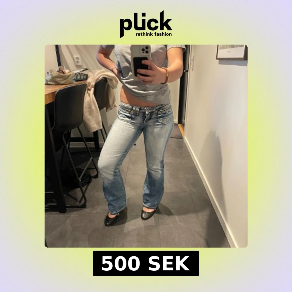 assnygga blå bootcut jeans! Midjemått 37cm och innerbenslängd 74cm. Dragkedjan är sönder men inget som märks mycket eftersom den är väldigt liten! Skriv vid frågor💕