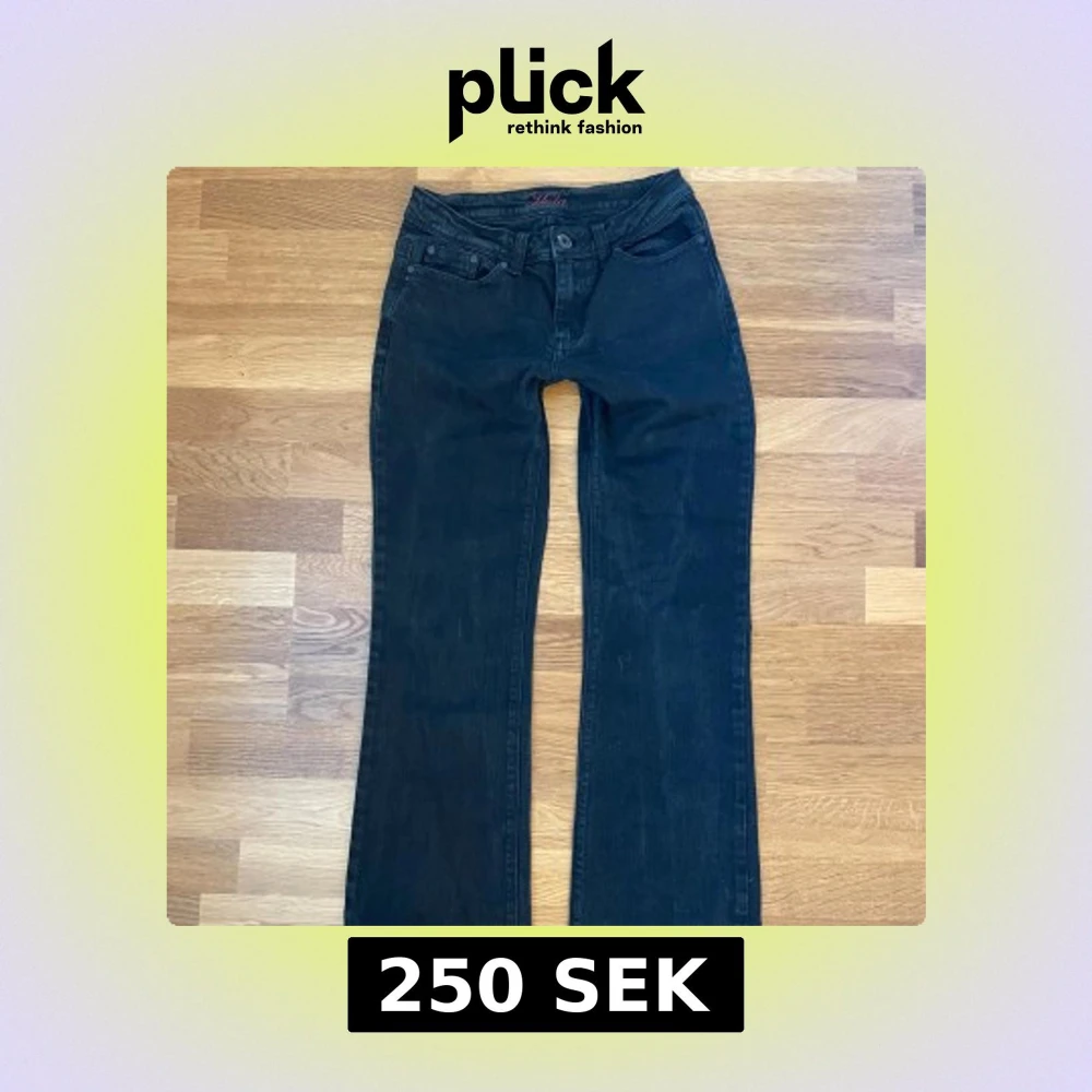 Svarta/mörkgråa jeans. Midjemått (rakt över): 35-36 cm. Innerbenslängd: 79 cm💙