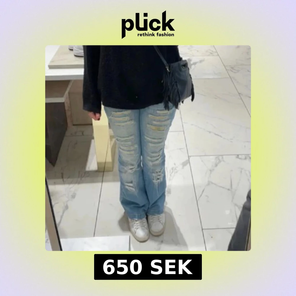 Super coola och trendiga jeans med slutningar som tyvärr inte passade mig. Bilder och mått från förra ägaren. Midjemått: 38 cm, innerbenslängd: 77 cm💓Jeansen har klassisk femficksdesign, knappgylf och en liten röd logotyp på bakfickan. Perfekta för en avslappnad och trendig look.