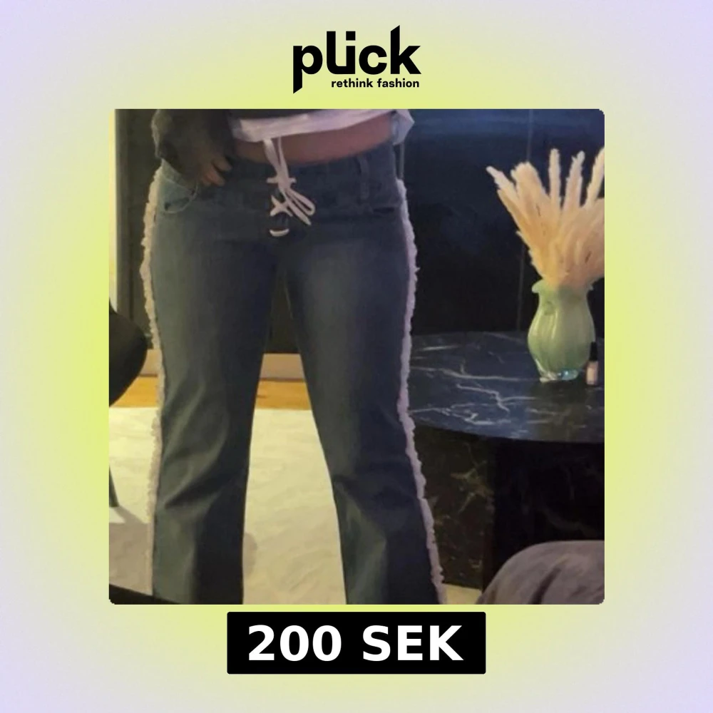 Säljer dessa coola jeans från ett Uf-företag. Går en spetskant längst med hela benen och är ett snöre till spänne. Supercoola! Lågmidjade, bootcut
