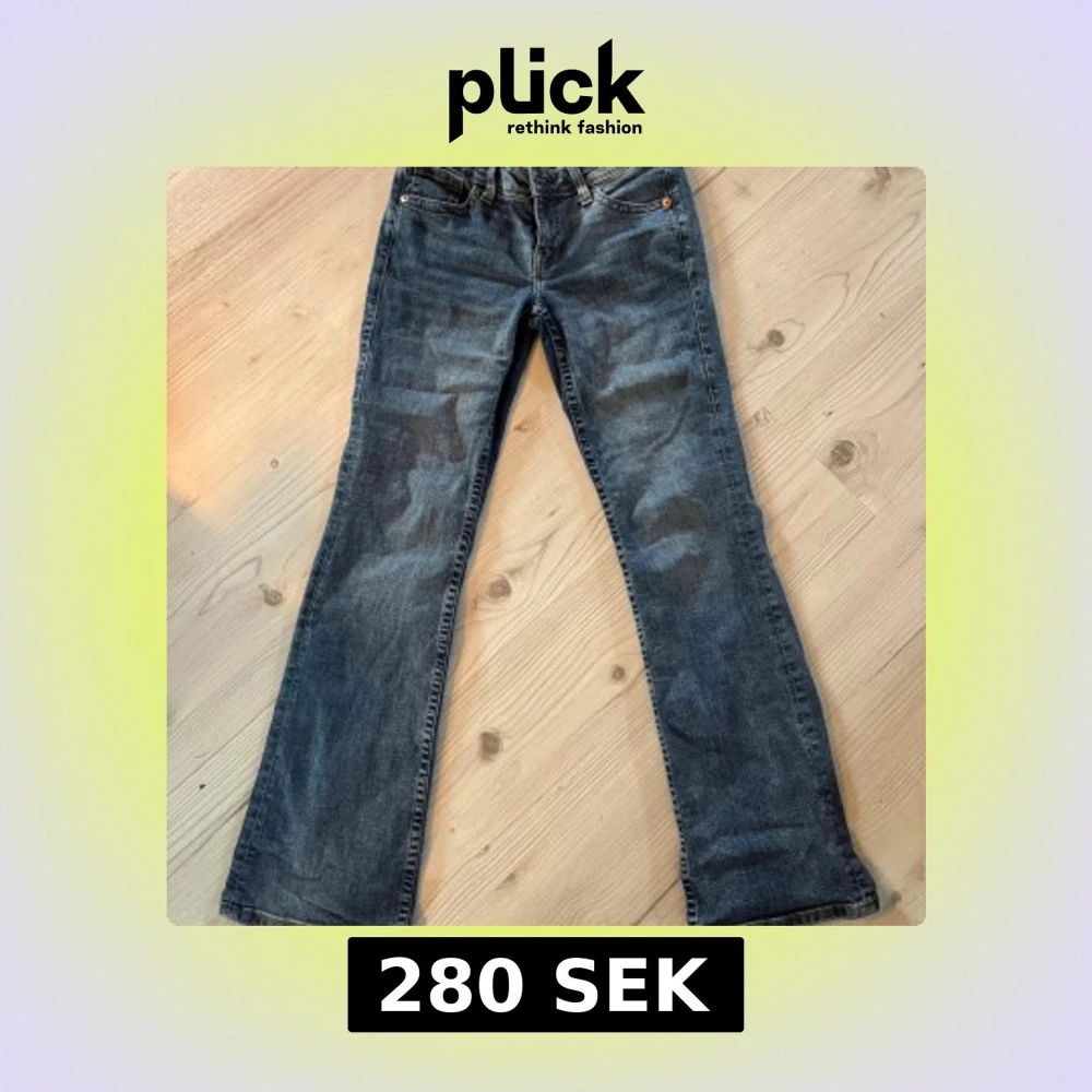 Lågmidjade, sitter jättefint men tyvärr passar dom inte längre. Sömnen har lossnat på ett ställe på ena fickan, men inget som syns när dom är på. Lite sönder trampade ner till.