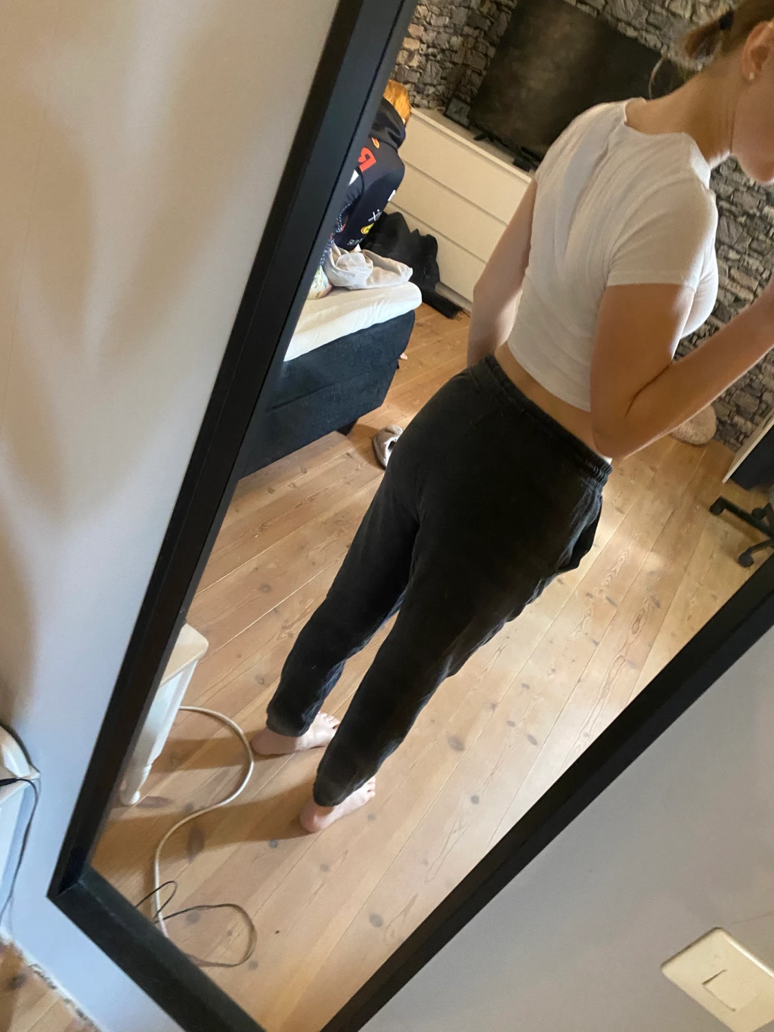 Mjukisbyxor som är stora i midjan men snörning finns. Skulle även passa som storlek M