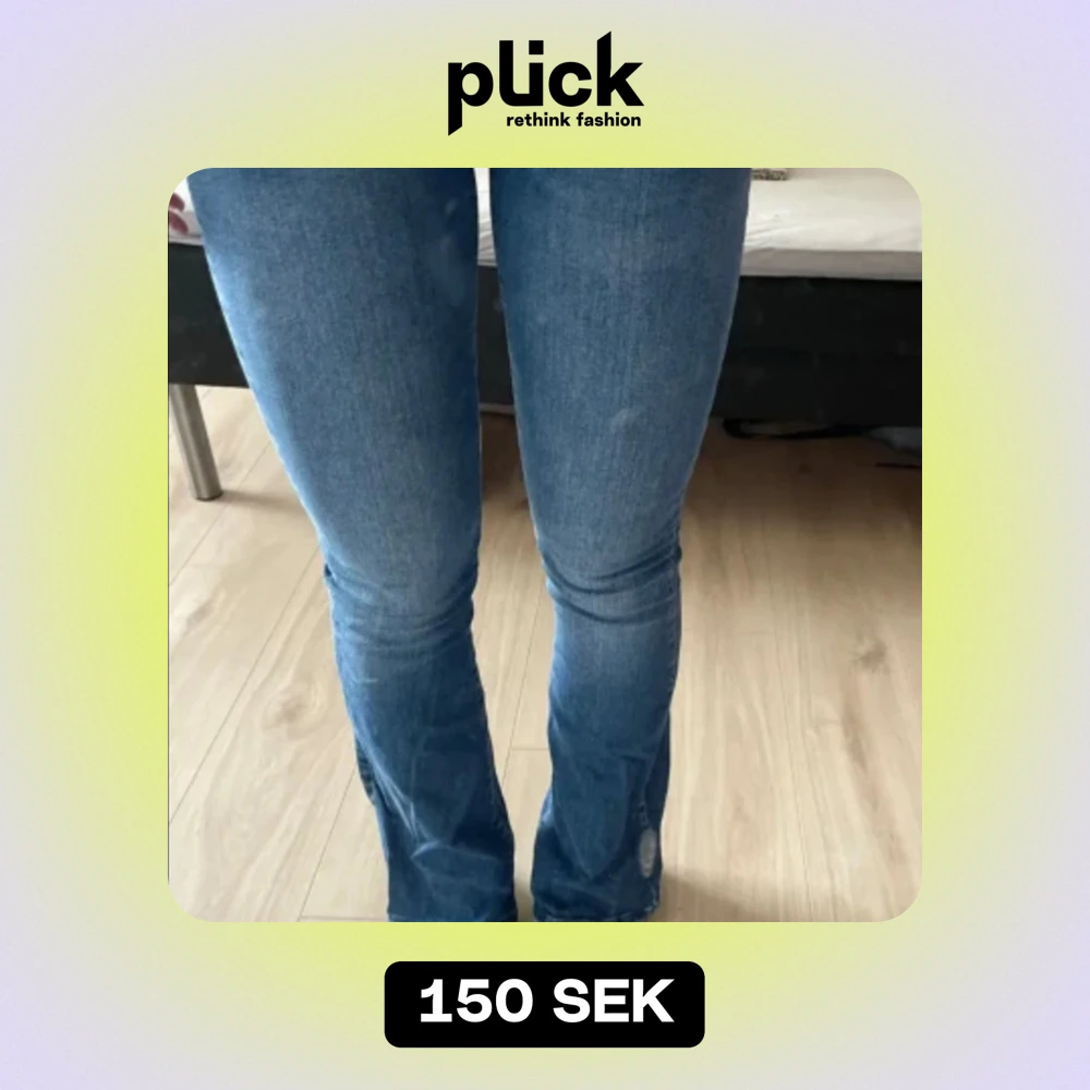 Säljer ett par snygga blå bootcut jeans. De är i bra skick och har en klassisk blå färg som passar till allt. Passar storlek S-M (28/32).