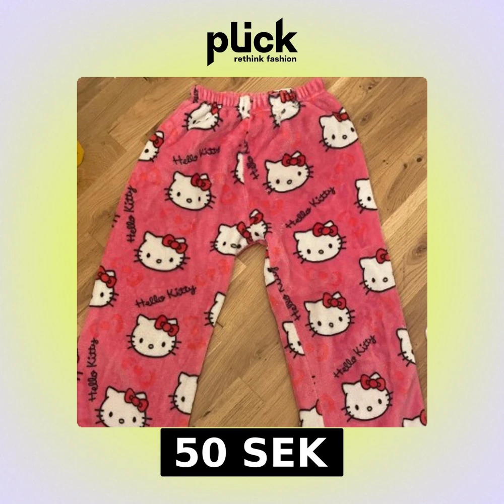 Supergosiga rosa mjukisbyxor med Hello Kitty-motiv över hela byxorna. Byxorna har resår i midjan och är gjorda i mjuk fleece, perfekta för chill hemma. Sött tryck med Hello Kittys ansikte och röda rosetter.