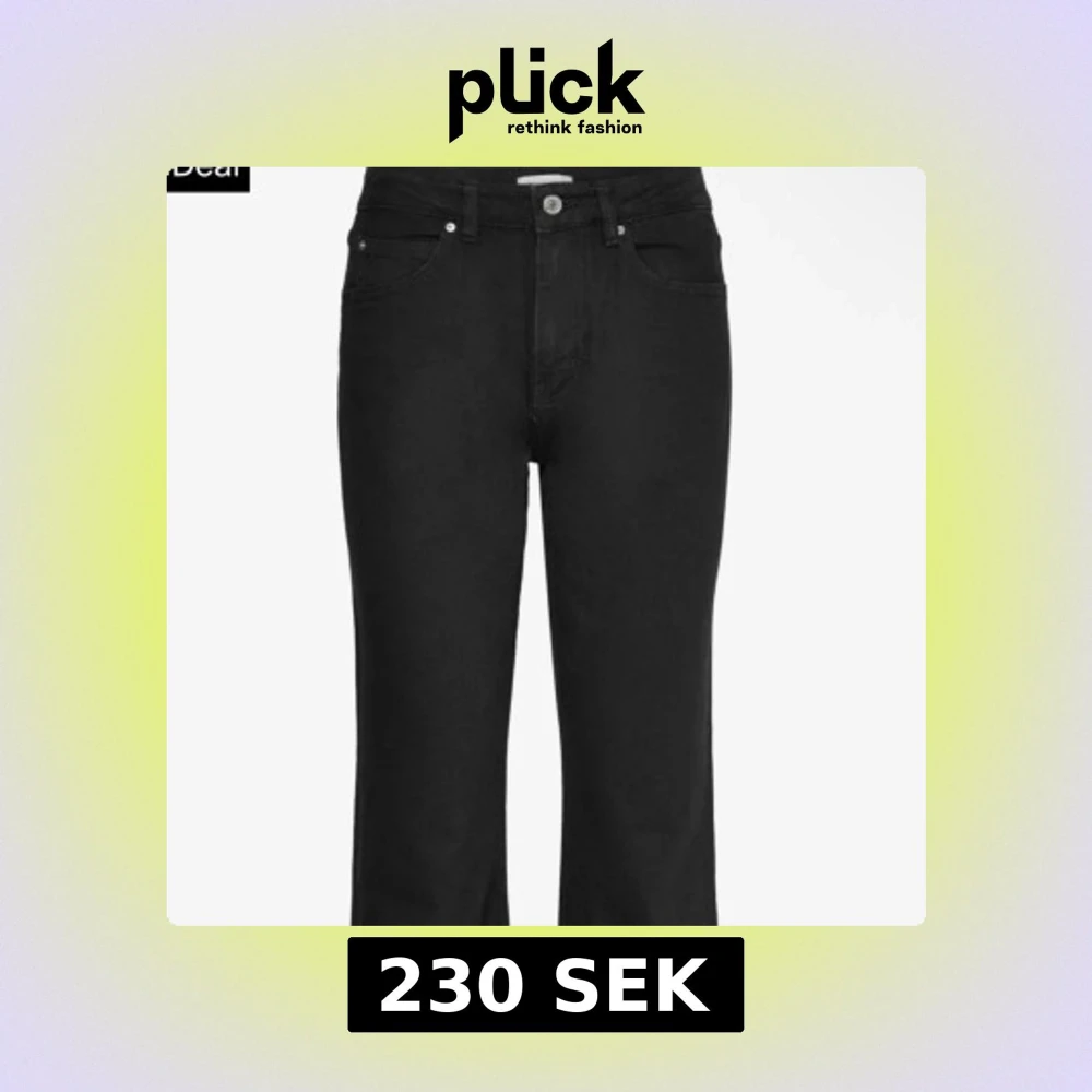 Snygga svarta jeans med hög midja och breda ben. Klassisk femficksmodell med dragkedja och knapp framtill. Byxorna är från bikbok och sitter bekvämt även i bra skick.