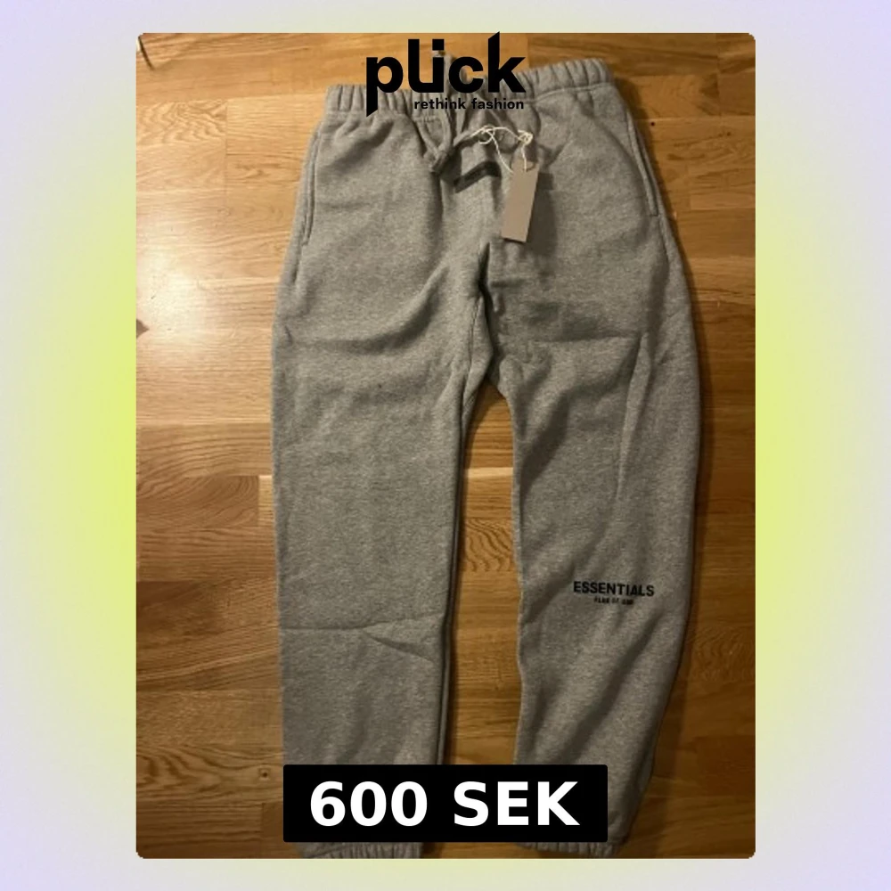 Grå mjukisbyxor från Essentials Fear of God med elastisk midja och snörning. Byxorna har muddar vid bensluten, sidofickor och en bakficka. Logga tryckt på benet och etikett i midjan. Perfekta för en chill och avslappnad stil.