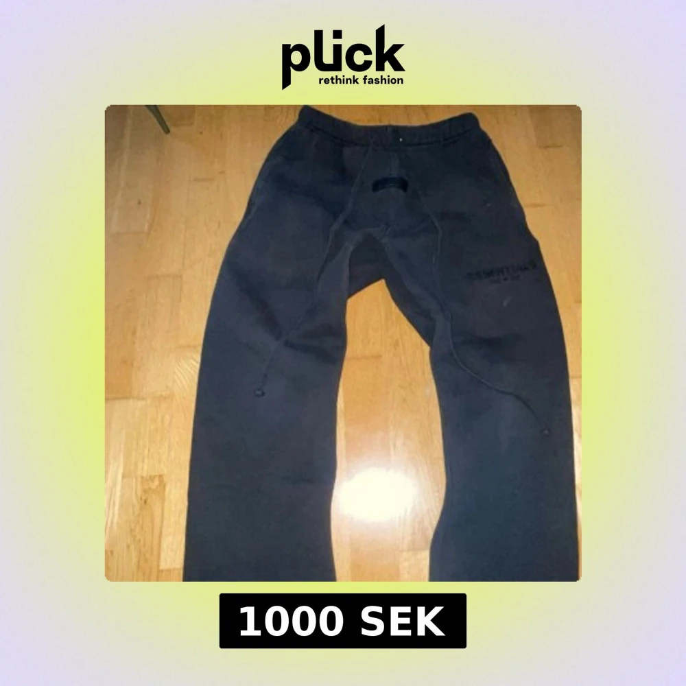 Säljer ett par svarta mjukisbyxor från Essentials. Byxorna har en elastisk midja med dragsko och en avslappnad passform. Perfekta för en bekväm och stilren look.