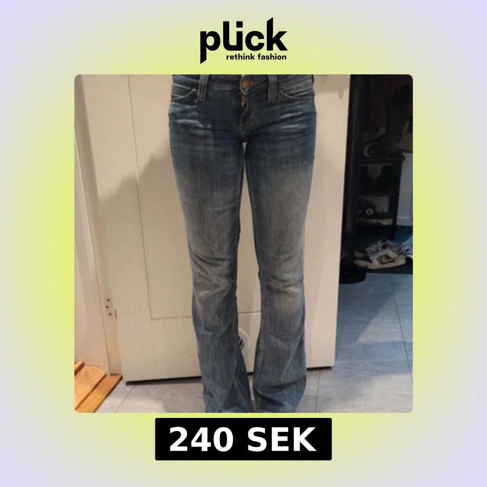 Säljer ett par blå bootcut jeans från Cheap Monday knappt använda då de är lite små för mig storlek 26/32