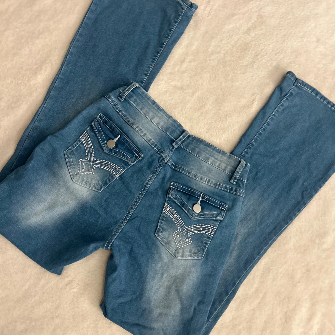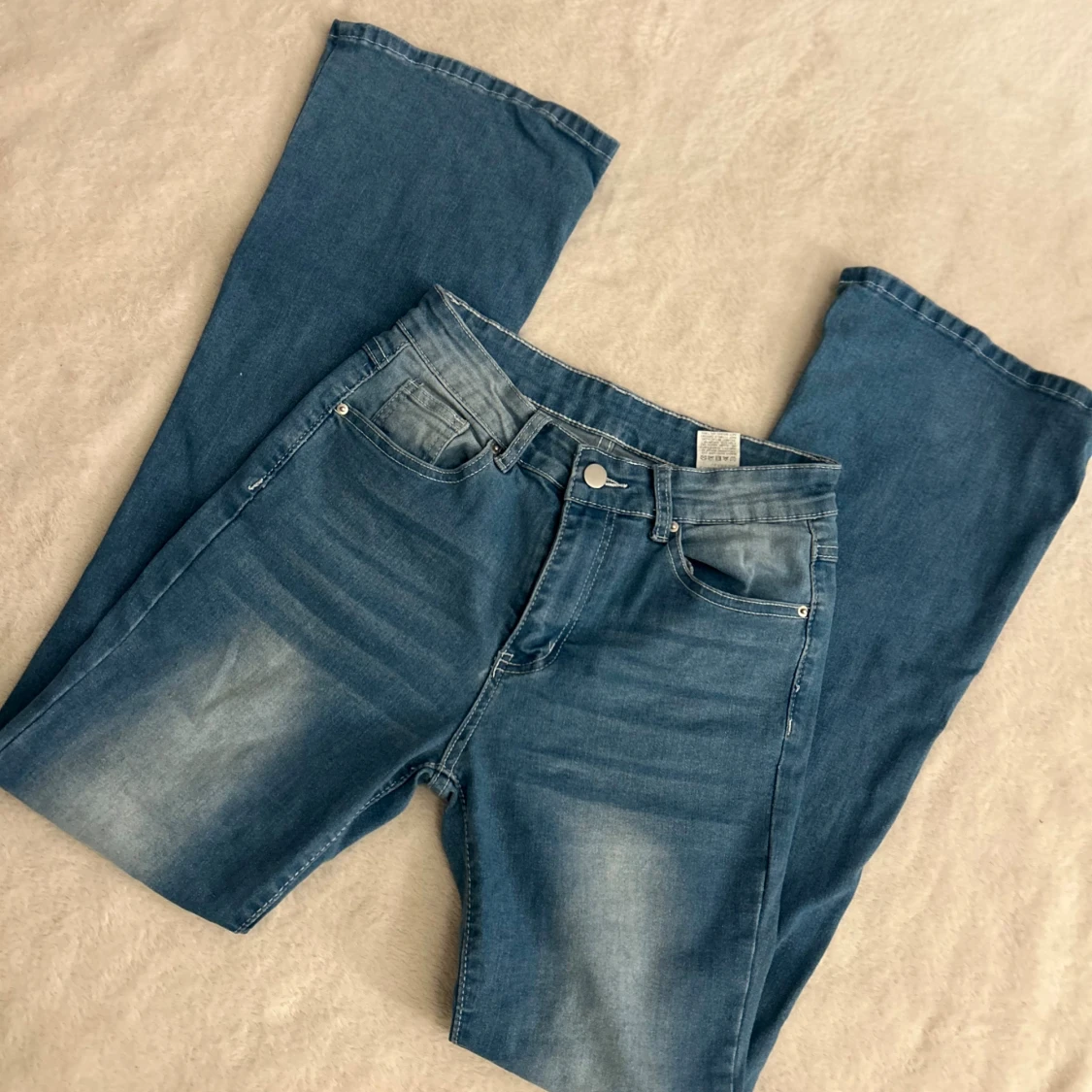 Bootcut jeans köpta från Shein! Dom sitter väldigt bra på mig, medelhög midja, går till fotknölen på mig som är 170. Endast använda 1-2 gånger, inga hål eller fläckar eller liknande, om ni undrar nått är det bara att fråga på! Nypris: 290 kr, mitt pris: 100kr + frakt 😊