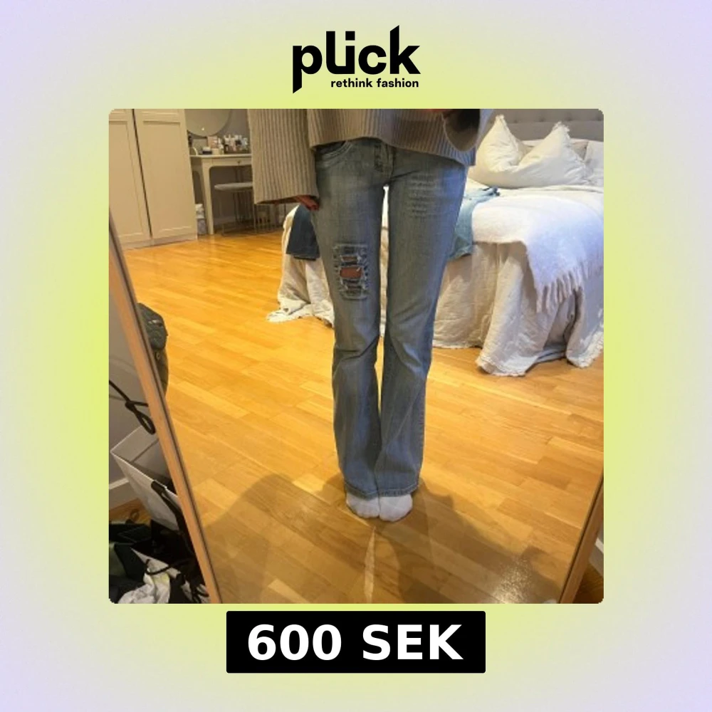 Säljer dessa lågmidjade, bootcut jeans med snygga detaljer❤️Jag är 169. Midjemåttet=35 cm tvärs över. Innerbenslängden=81cm