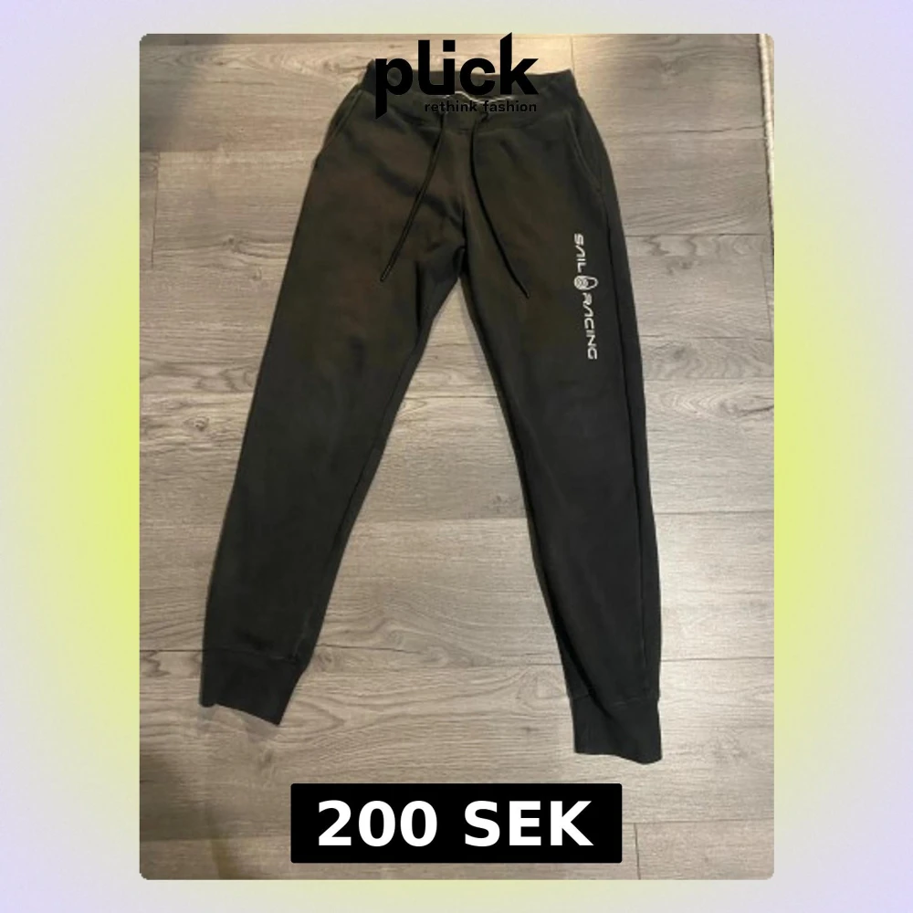 Svarta mjukisbyxor från Sail Racing i storlek S. Byxorna har snörning i midjan, ribbade muddar vid bensluten och en bakficka. Loggan är tryckt längs ena benet. Mjukt material som är perfekt för chill eller träning.