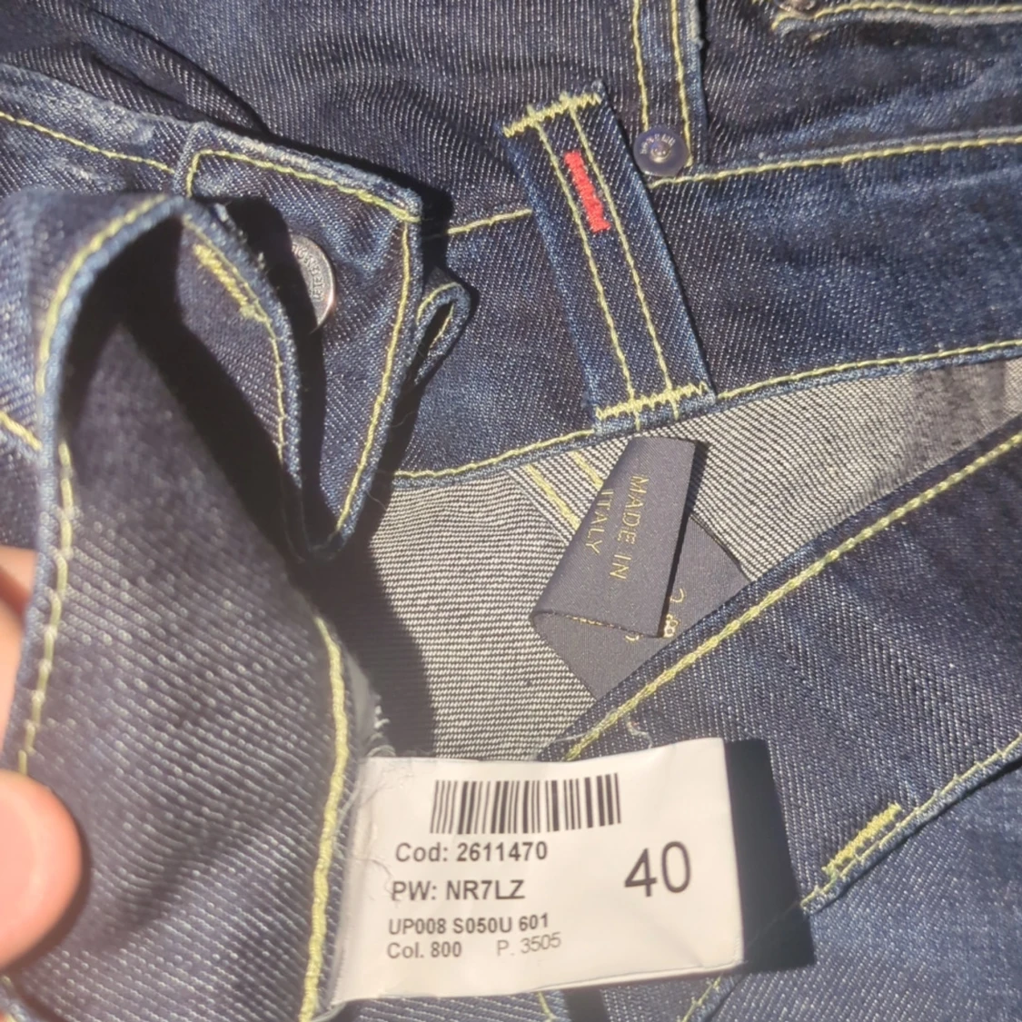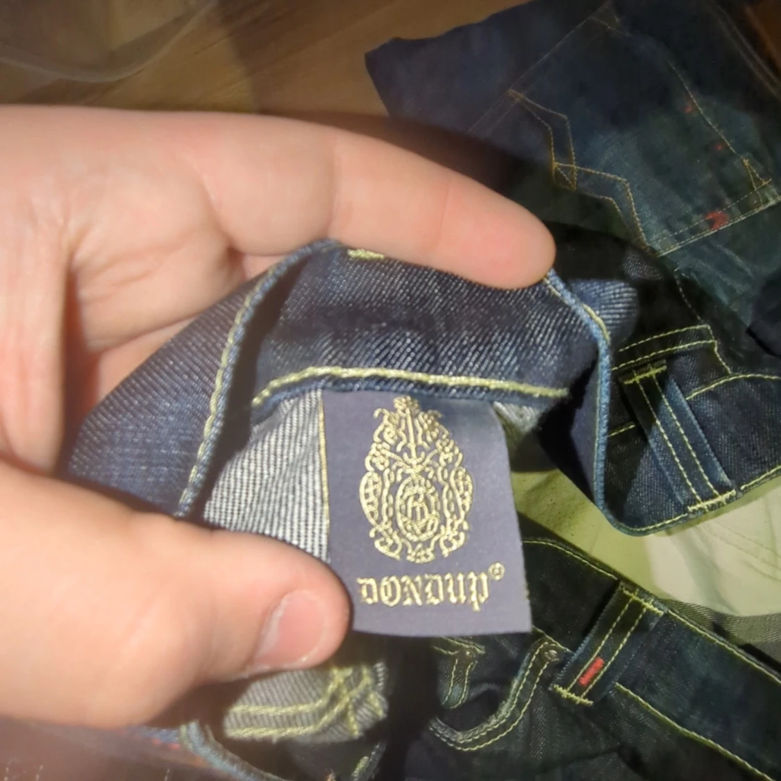 Snygga mörkblå jeans med klassisk design och kontrasterande sömmar. De har fem fickor och en knappgylf. Perfekta för en stilren look. Märket är dondup en av dom dyrare Jeansen på marknaden kostar runt 3000 nya. Har själv aldrig använt dom då jag köpte av en kompis som använt dom cirka typ 6 gånger, helt ny skick förutom längst ner på dom som syns på bild. Pris kan diskuteras. Står storlek 40 på dom jag själv tycker att dom sitter som W36 L 32