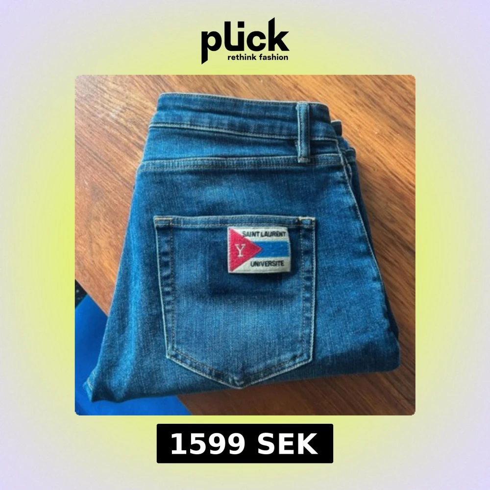 Blå jeans från Saint Laurent med klassisk femficksdesign och en unik patch på bakfickan med texten 'Saint Laurent Université'. Jeansen har raka ben, normal passform och är tillverkade i slitstarkt bomullsjeans. Perfekta för dig som gillar exklusiva detaljer och snygg streetstil.
