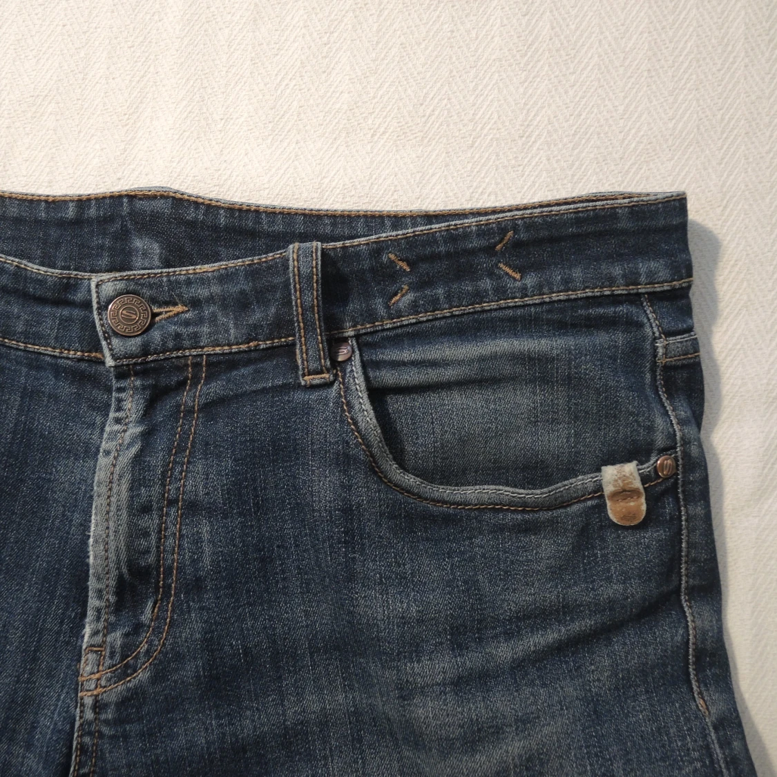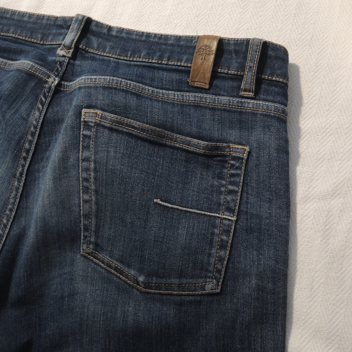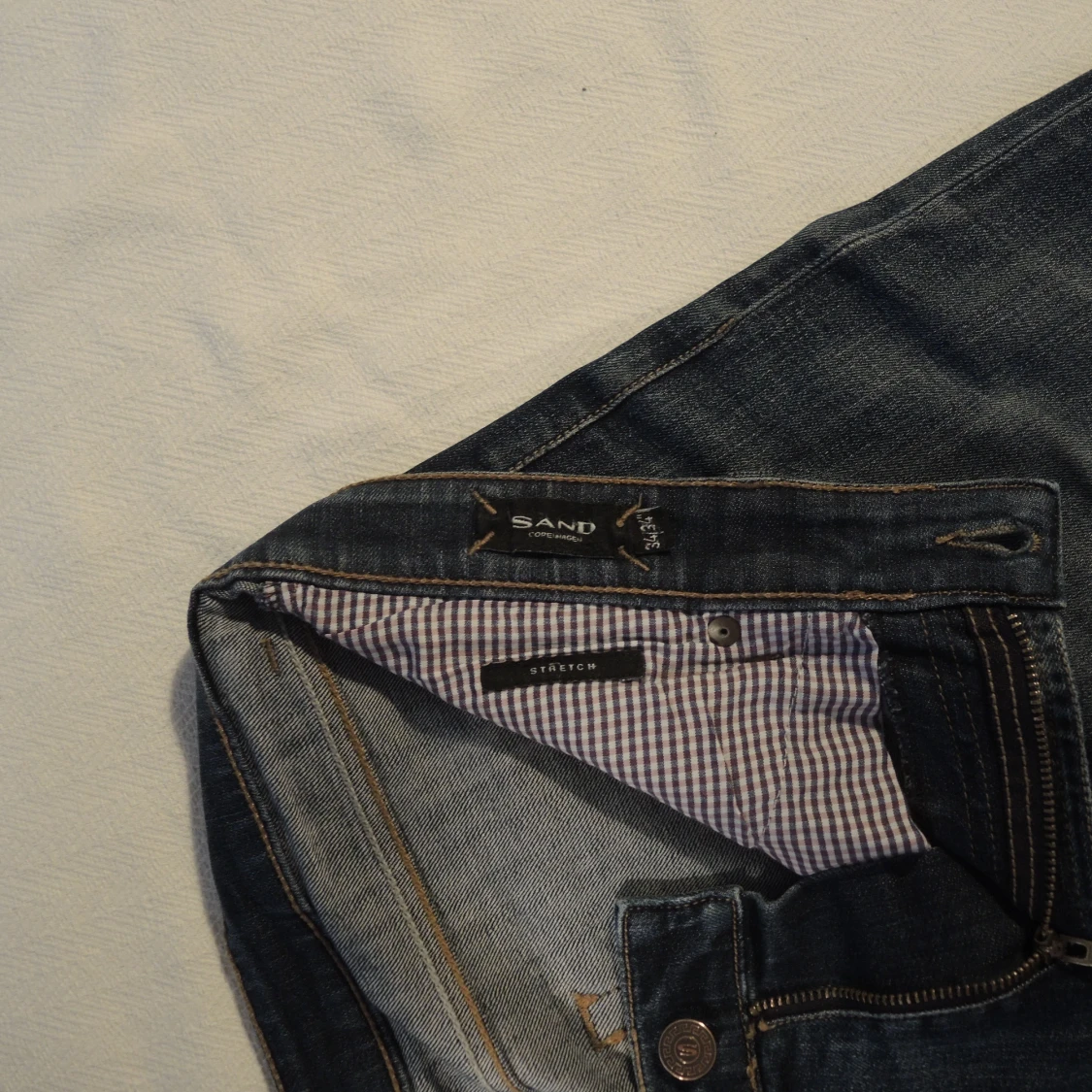 Ett par stilrena jeans från de danska märket Sand. Jeansen har en riktigt schysst wash, väldigt bra passform och snygga detaljer. Perfekta för vardagen men fungerar även fint med skjorta och kavaj. Storleken är W:34 L:34. Vid intresse är det bara att höra av sig!