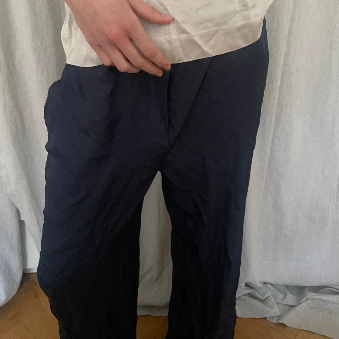 Jättefina mörkblå sidenbyxor från mango💓💓