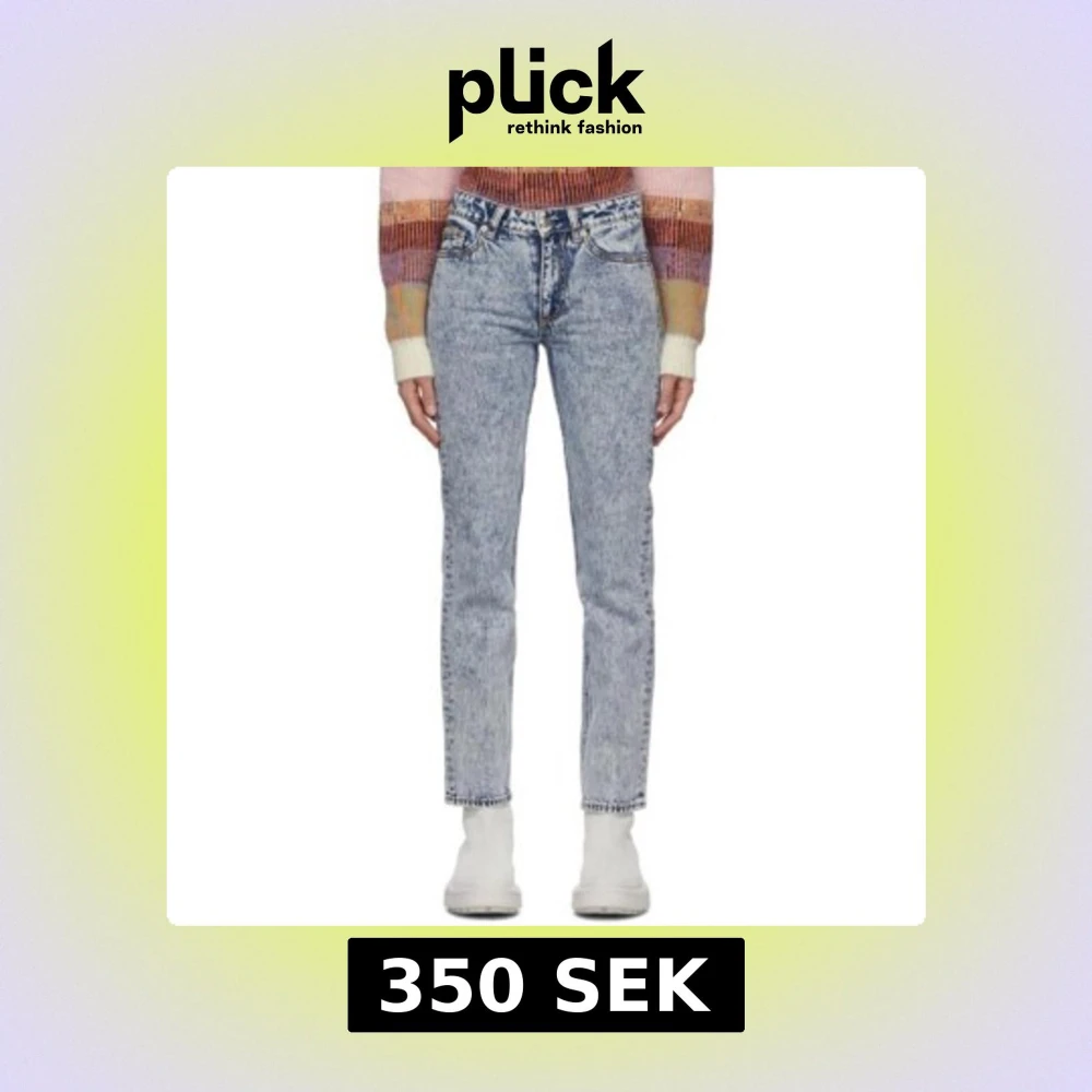 Säljer ett par ljusblå jeans från Eytys i modellen Cypress regular straight som ej säljs längre. Storlek 28/32 men sitter snarare som 27 eller stora 26:or. Jeansen har signifikant märke på baksidan av fickorna, se bild. Säljes då de är för små för mig, endast provade och med prislapp kvar. Skulle säga att de påminner om Levis 501 eller liknande i modellen.