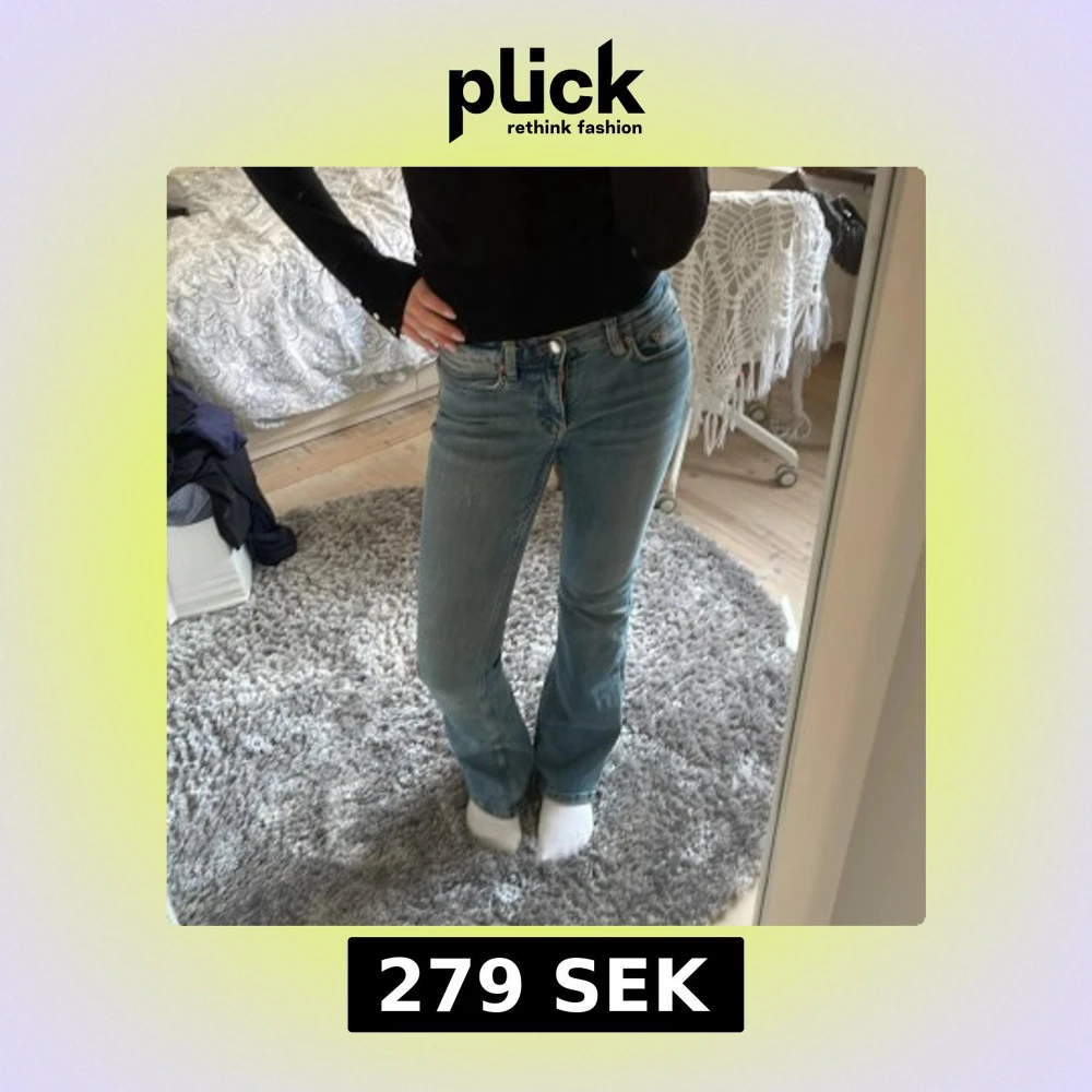 Jätte snygga lågmidjade bootcut jeans från Gina Tricot. Säljer då jag tycker de är liite för korta på mig som är drygt 170 lång. Skicka gärna prisförslag, kanske säger jag ja🫣