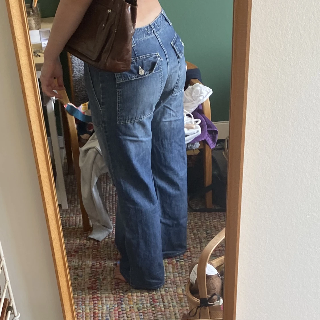 Säljer de här så snygga lågmidjade jeansen då de tyvär blivit förstora. Köpta på Thrift Planet i Köpenhamn och i så bra kvalitet💙 Hoppas att någon annan kan få njuta av dem lika mycket som jag gjort! Står ingen storlek men skulle säga kring M.