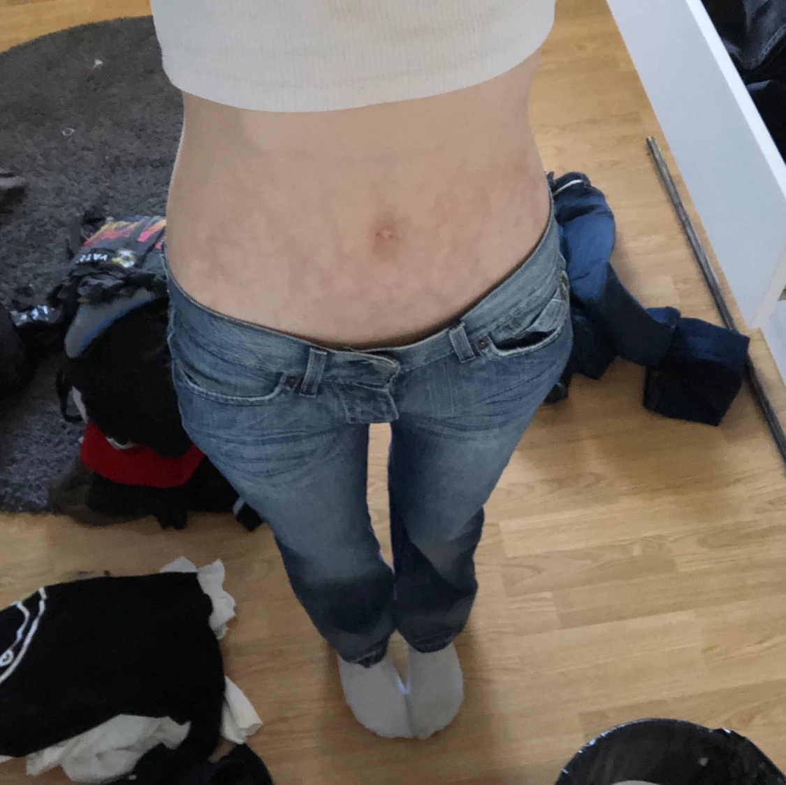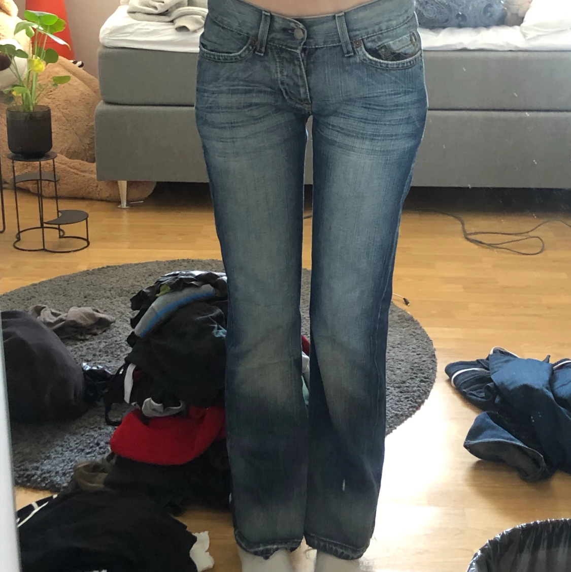 så jävla snygga lågmidjade jeans! köpta secondhand men i bra skick ändå. de e uppsprättade då de inte passade i längden för mig. innerbenslängden är ca 76 cm o jag är 173 cm för referens, midjemåttet är 38 cm rakt över, alltså ca 76 cm runt om. säljer då ja inte får nån användning. direktpris 250 om inte högre bud finns! finns även fler bilder<3 hör av dig vid frågor!!!