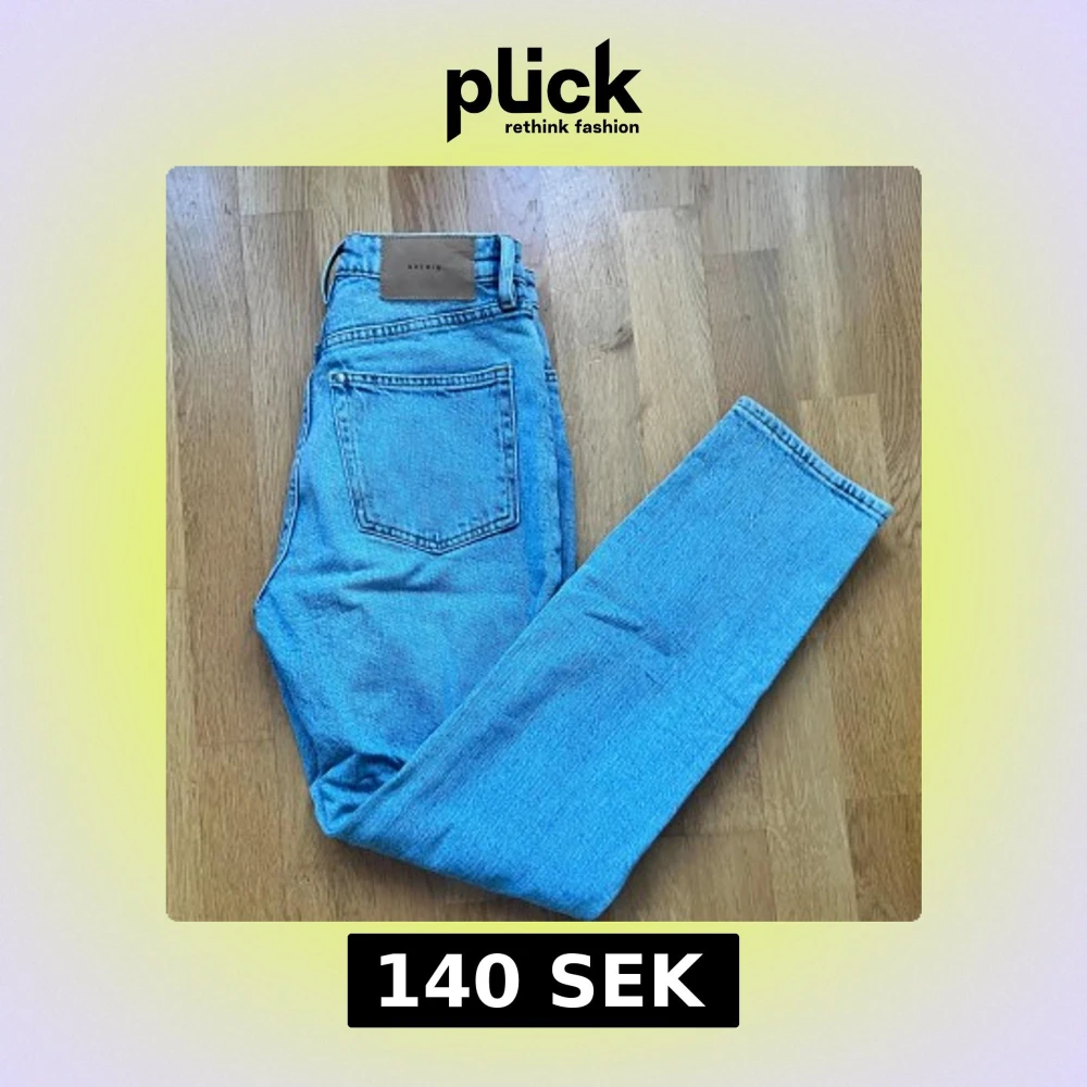 Snygga blå mom jeans med ultra hög midja från H&M. Perfekta för en avslappnad stil med en klassisk denimlook. De har en traditionell femficksdesign och en bekväm passform.